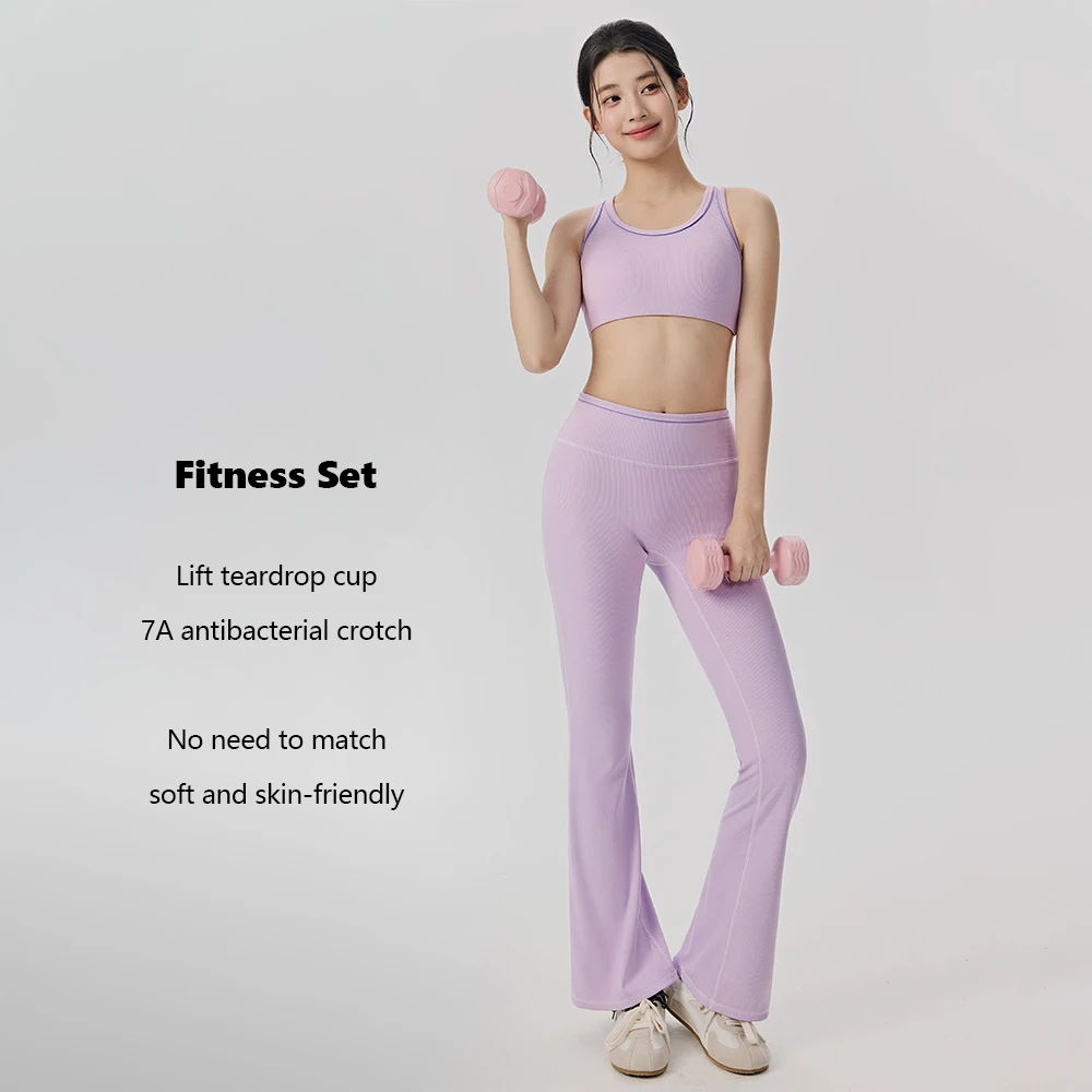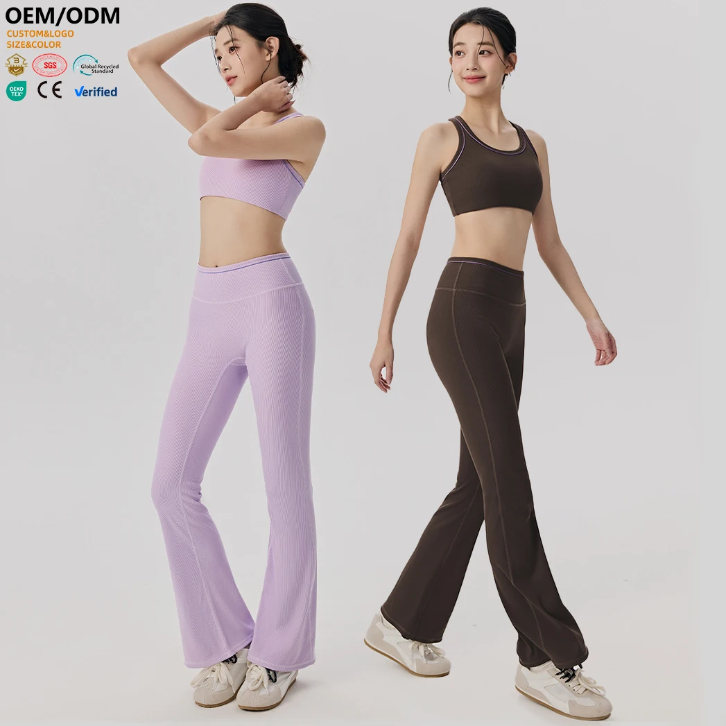XW-DWB116021+116111 Custom Solid Comfortable Sports Bra Flare Pants Breathable Fitness 2 Piece Gym Clothing Women Yoga Wear Set