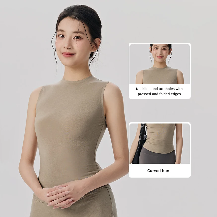 XW-DWM116036 Merino Breathable Quick Dry Sportswear Soft Fabric Skin Friendly Sleeveless Yoga Wear Solid Pattern Tops for Women