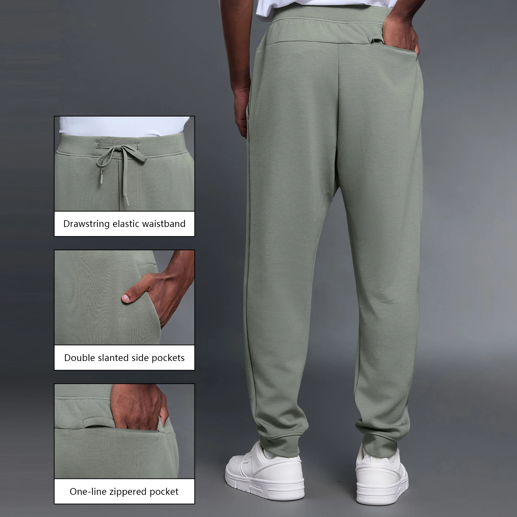 XW-DMK028 Sportswear Athletic Workout Solid Color Drawstring Training Fitness Gym Clothing Zip Pocket Men's Sports Pants