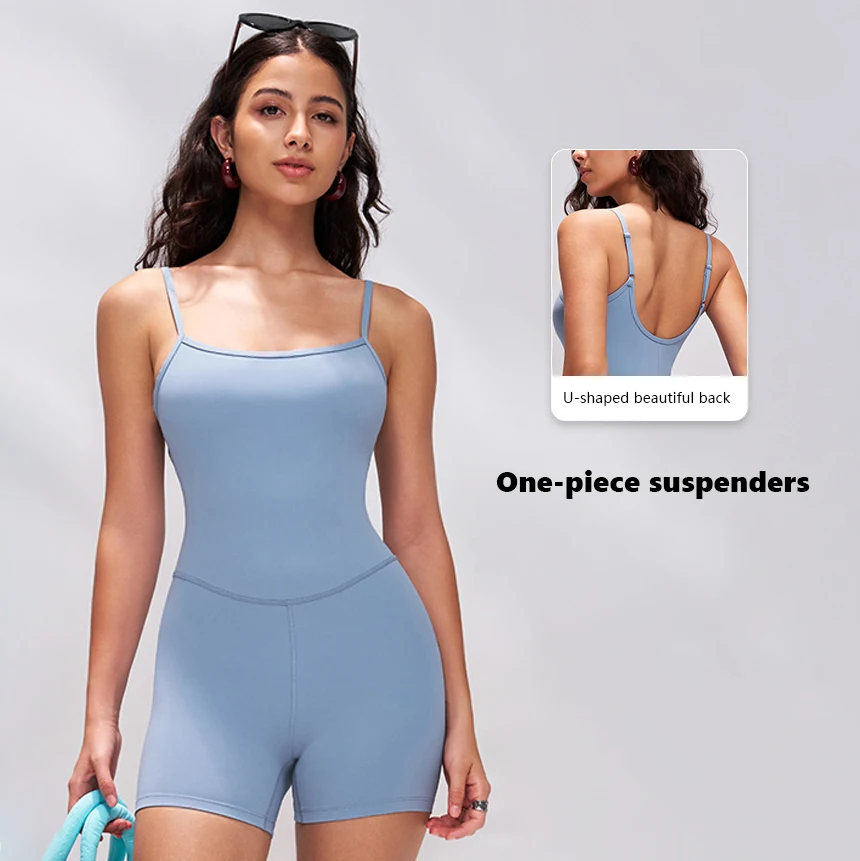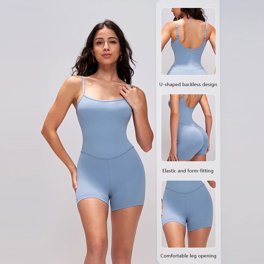 XW-LTY019 Slimming Activewear Backless Solid Color Custom Versatile Elastic Sports Shorts Women One Piece Yoga Jumpsuit