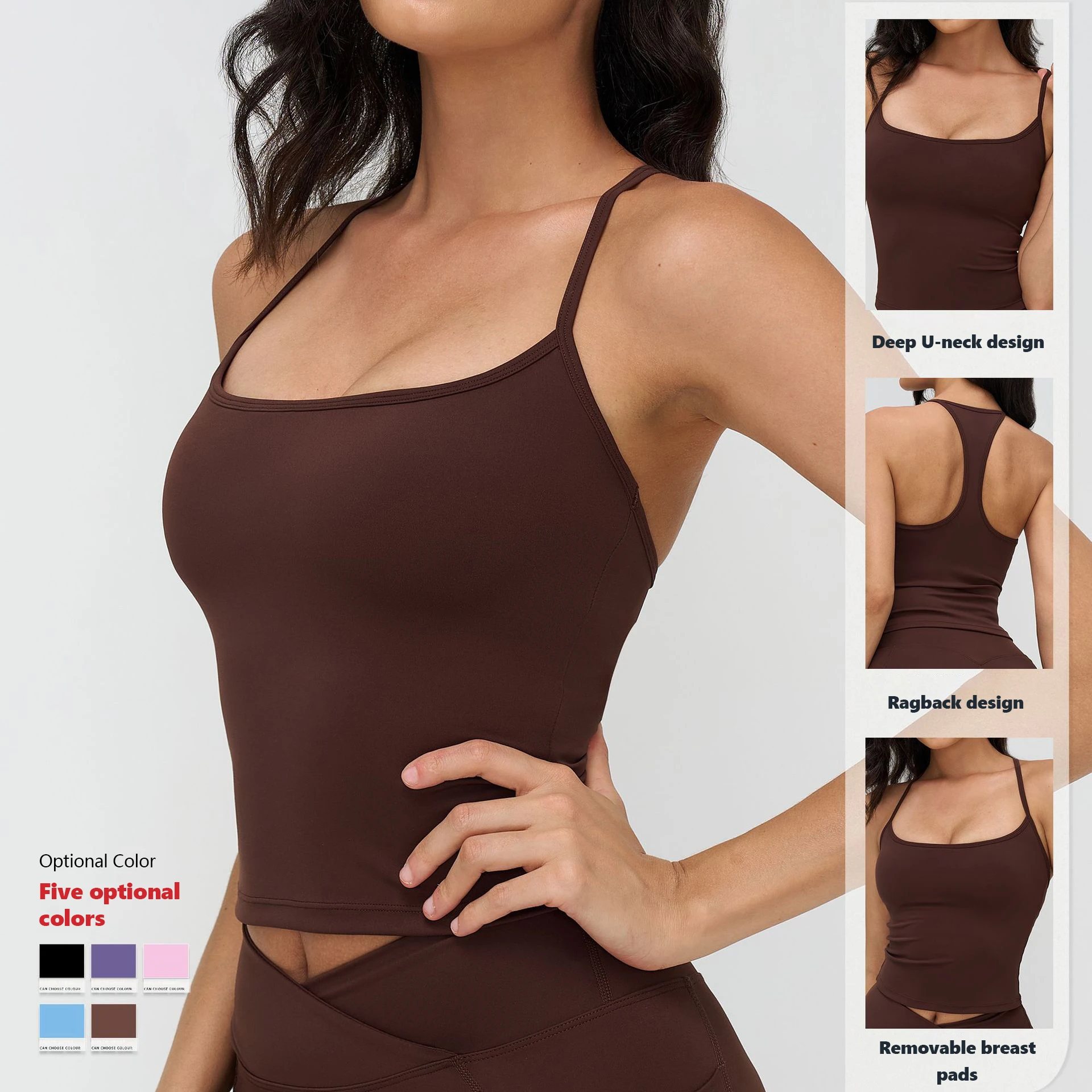 XW-EBX4518 High Quality Casual Breathable Chest Pad Racerback Fitness Exercise Sports Tank Top Women's Sleeveless Vest