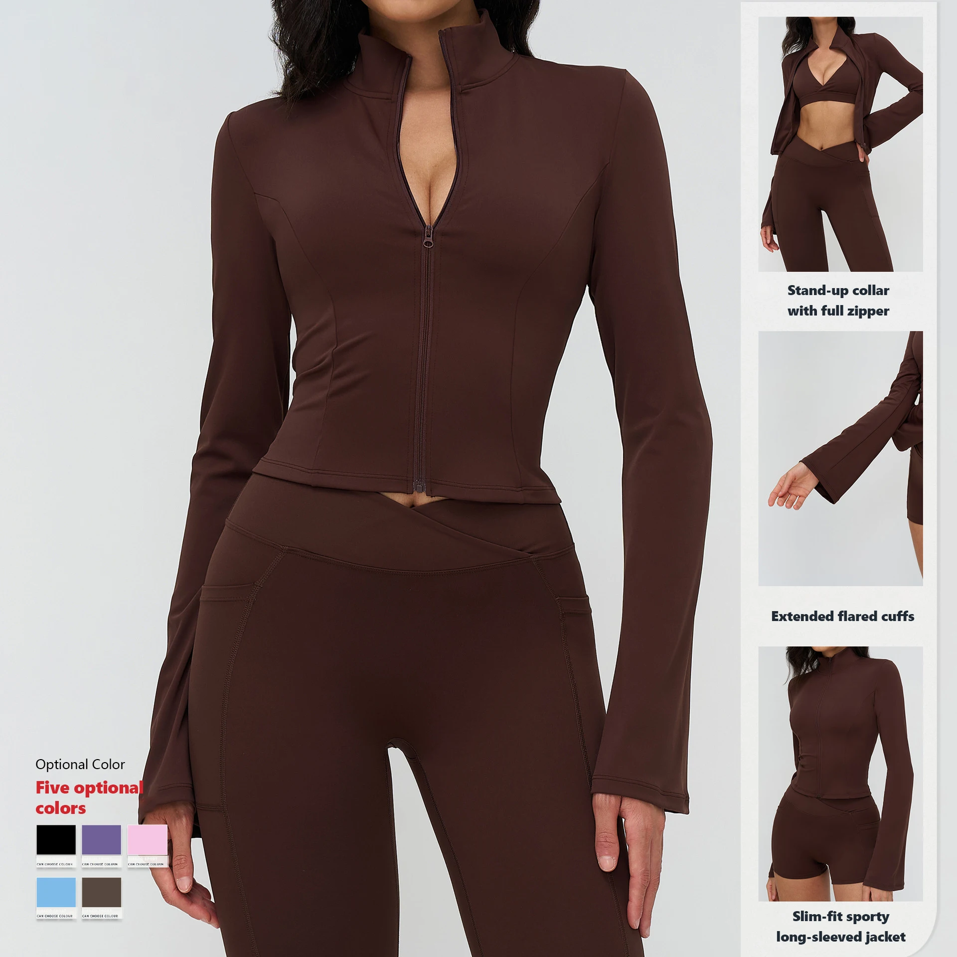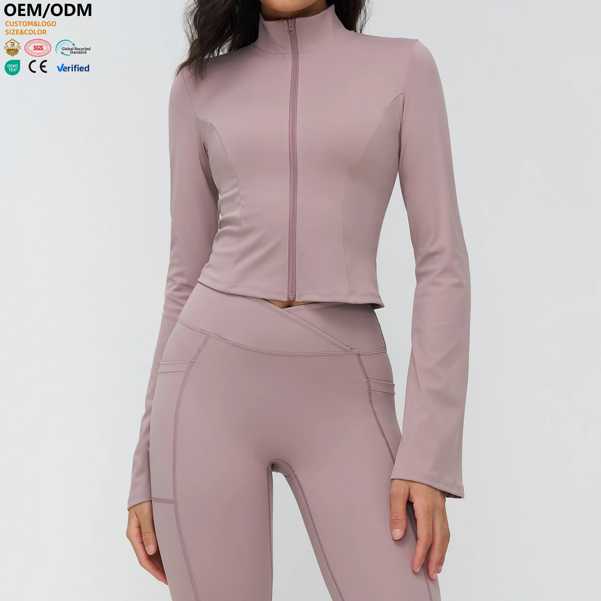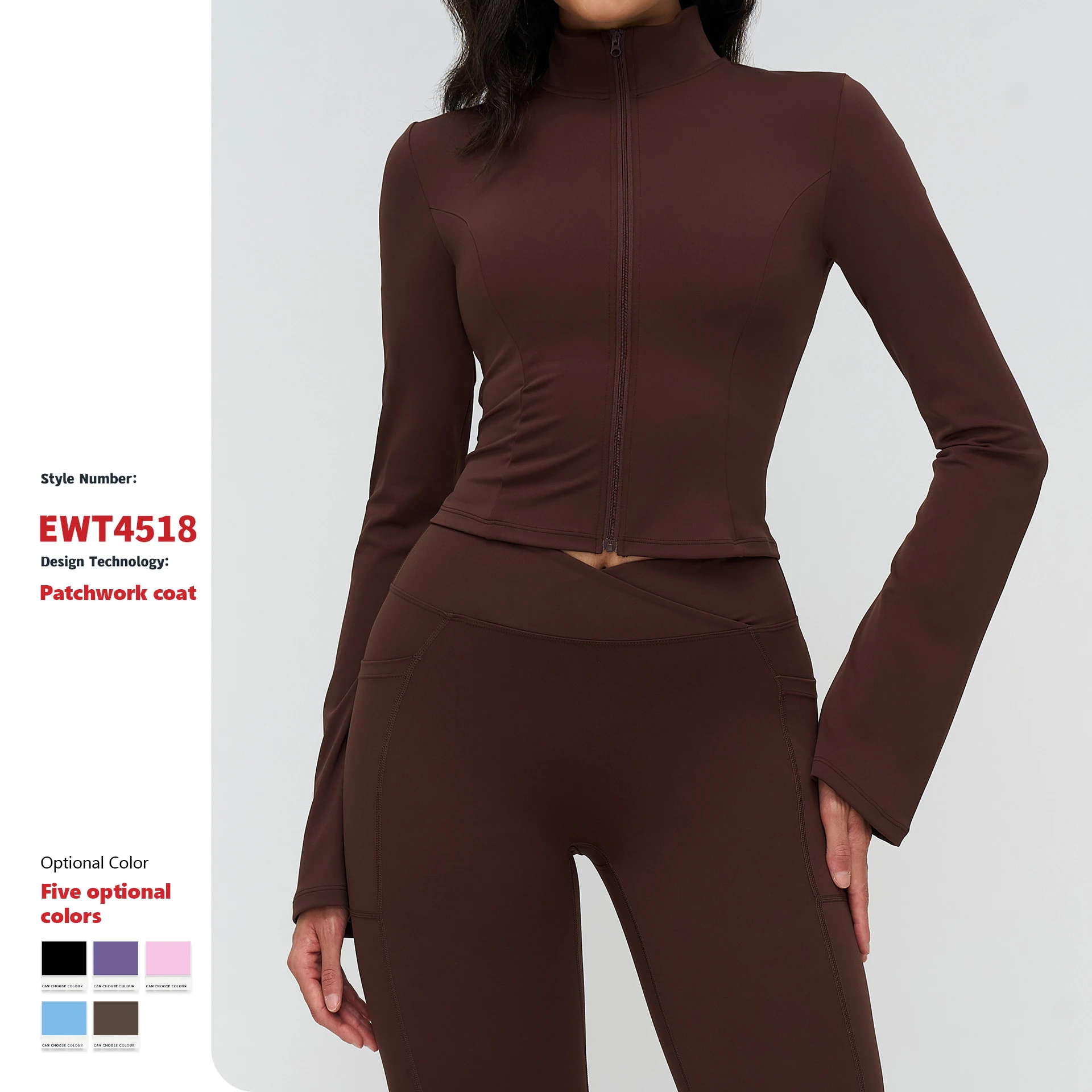 XW-EWT4518 High Quality Gym Clothing Women Long Sleeve Breathable Zip up Workout Casual Stand Collar Thumbhole Yoga Jacket