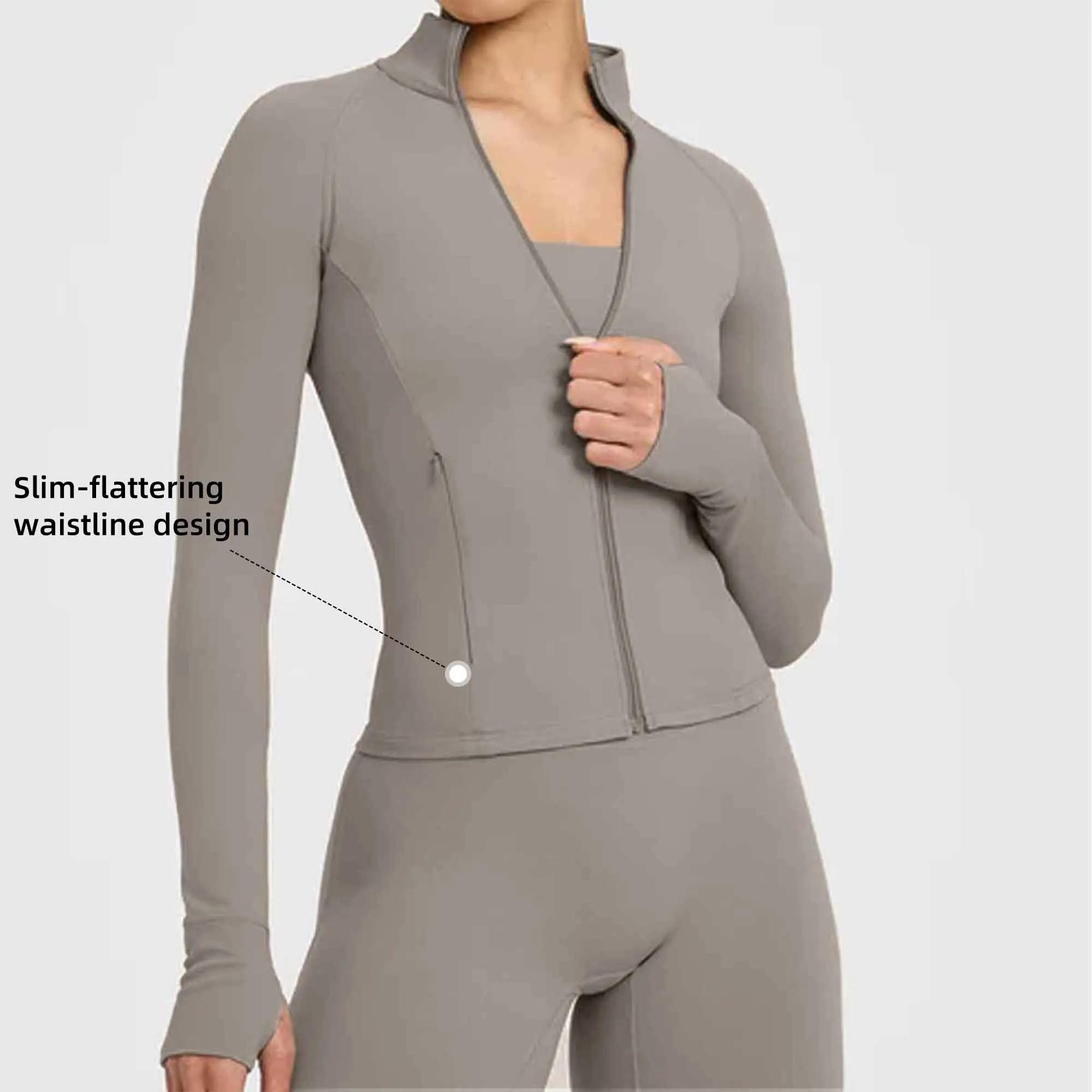 YISHENHON New Arrivals Quick-drying Women's Tight Running Sports Fitness Yoga Jacket Activewear Zip Long Sleeve Workout Crop Top