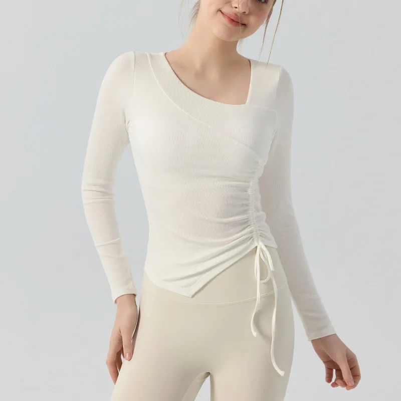 XW-MZ-403 Wholesale New Design Breathable Custom Casual Versatile Drawstring Long Sleeve Skinny Chest Pad Women's Sports Top