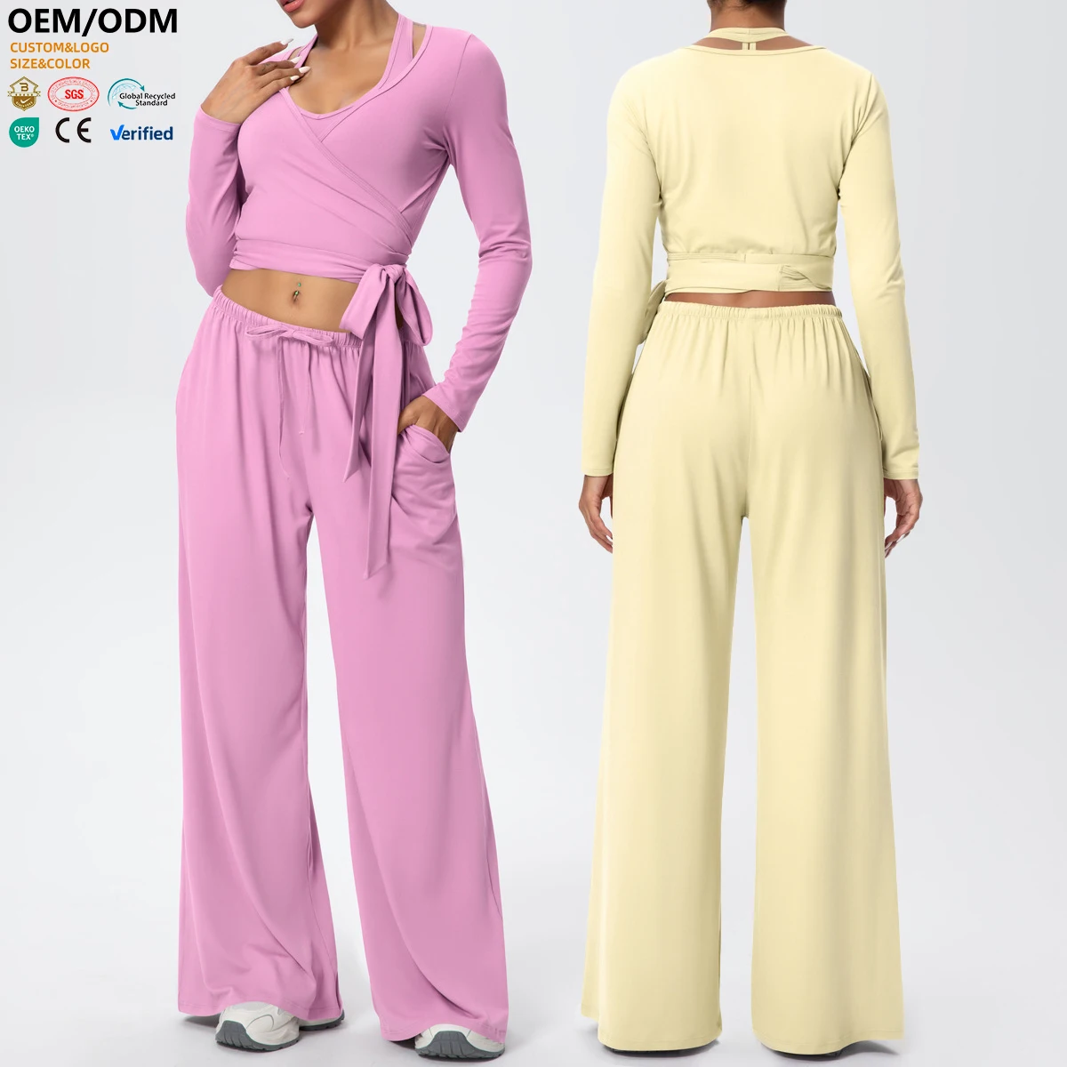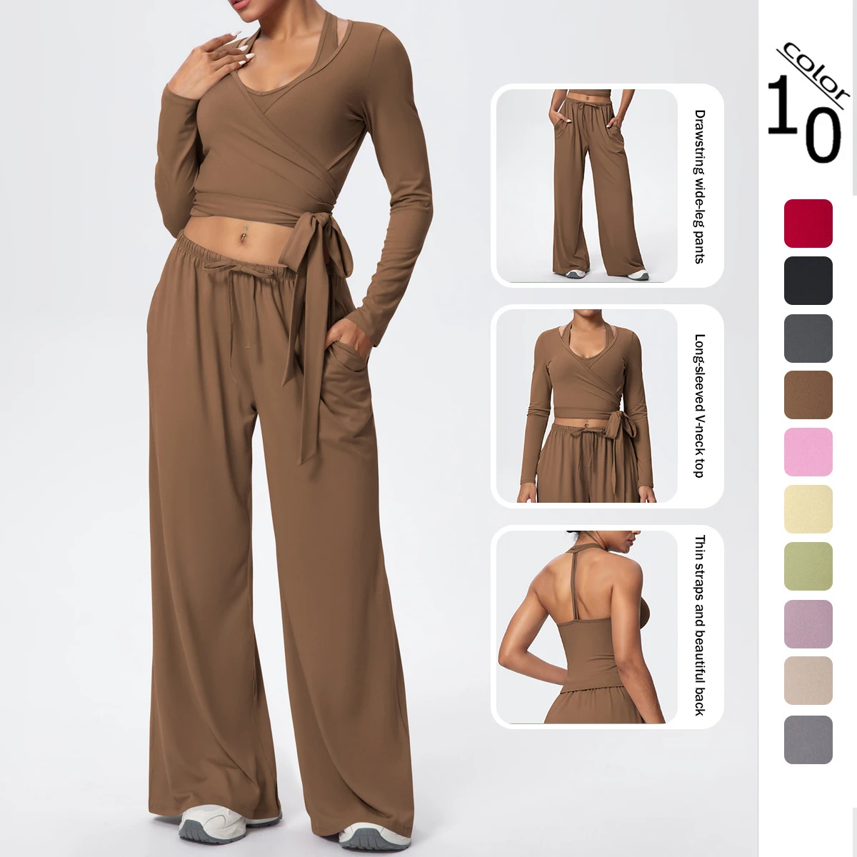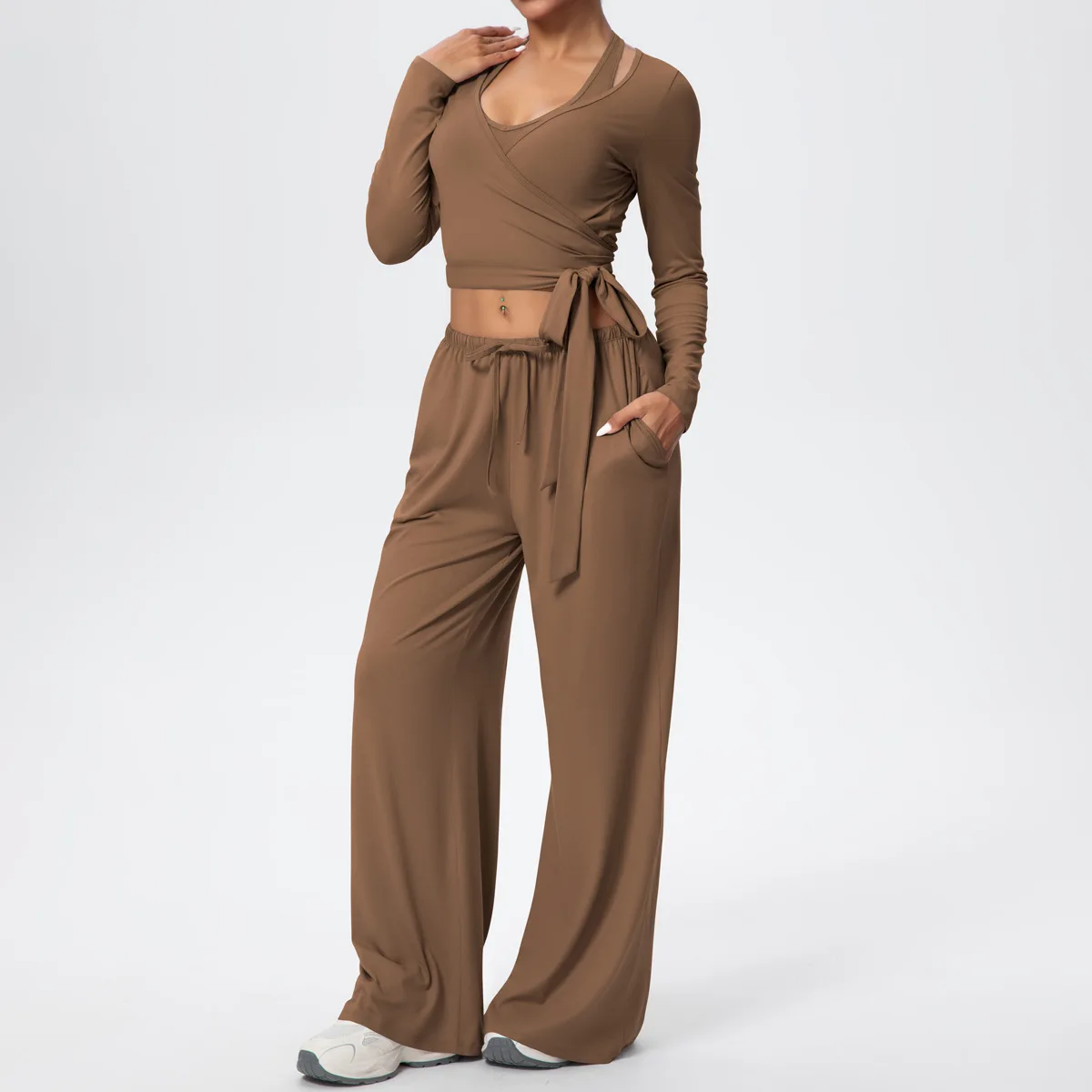 XW-7133+7134+7135 wholesale Sportswear Yoga Veste Running Soft Long-sleeved Topfitness Wide Leg Trousers Women'sgym Activewear