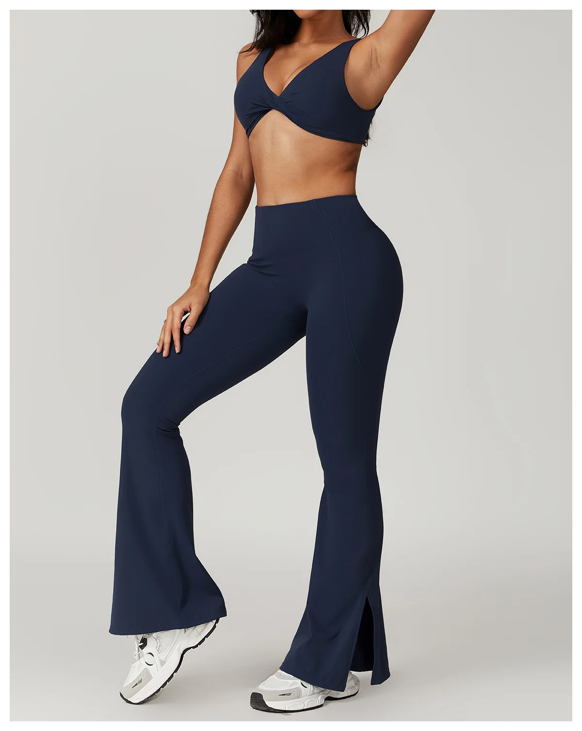YISHENHON High Quality Gym Yoga Flare Leggings Hot Selling High-Waisted Wide Leg Pants for Women Solid Casual Sport Running