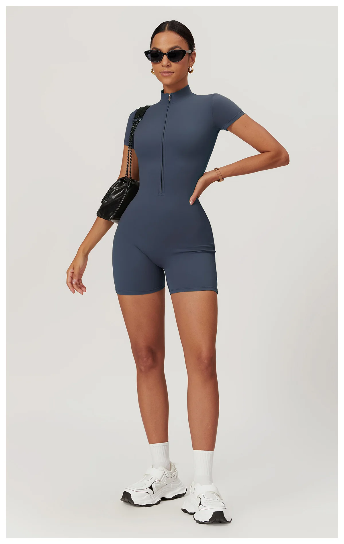 Custom Quick Drying Sportswear Fitness Gym One Piece Short Bodysuit Yoga Jumpsuits With Zipper for Women
