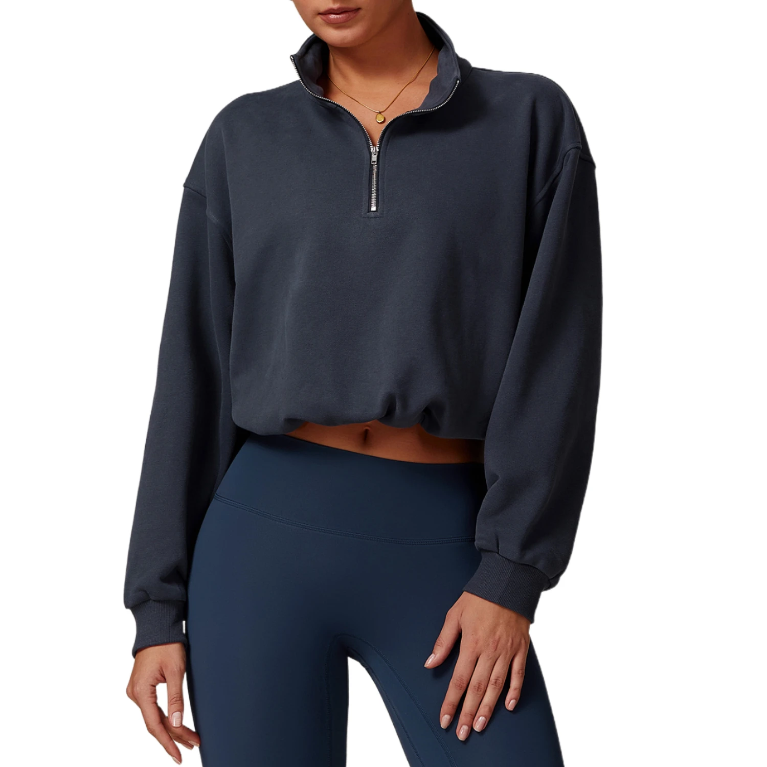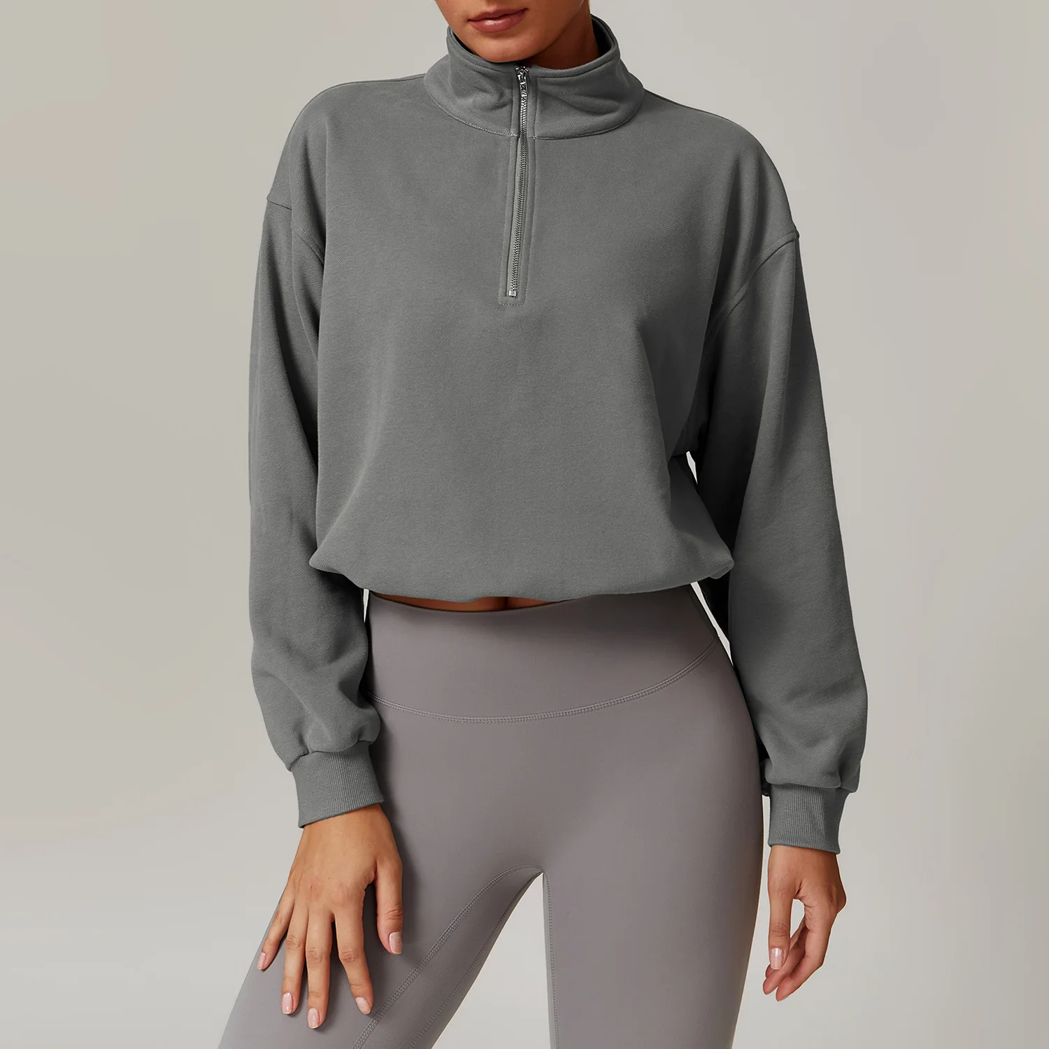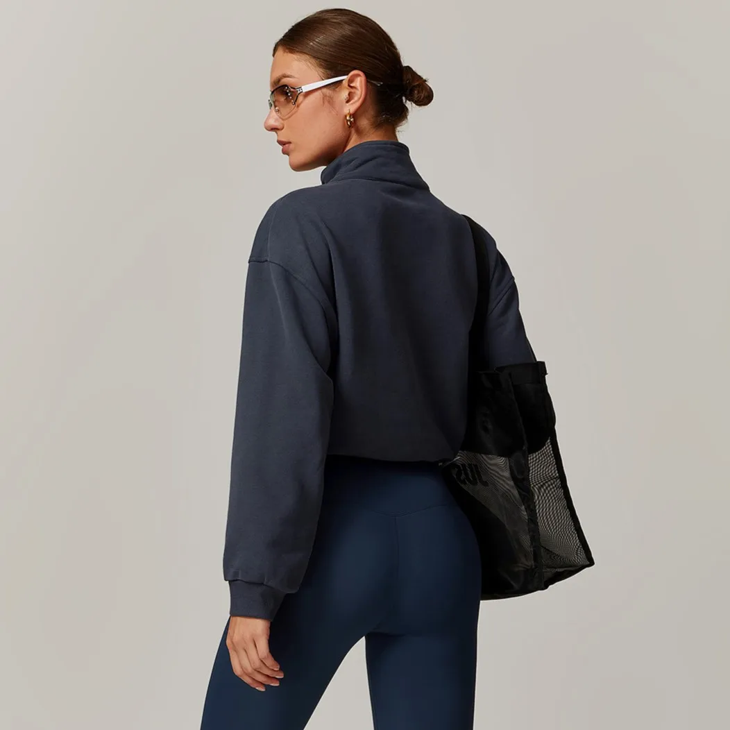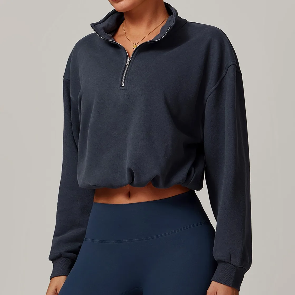 Custom Pullover High Collar Fitness Sports Outdoor Running Pull Rope Zipper Loose Long Sleeve Crop Hoodies Women Clothing