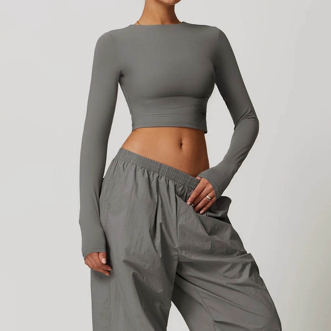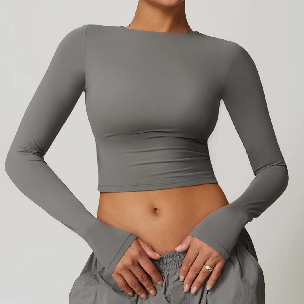 Long Sleeved Yoga Wear T-Shirt Quick Drying Tight Fitness Clothing Women's Crop Tank Top High Quality Gym Top