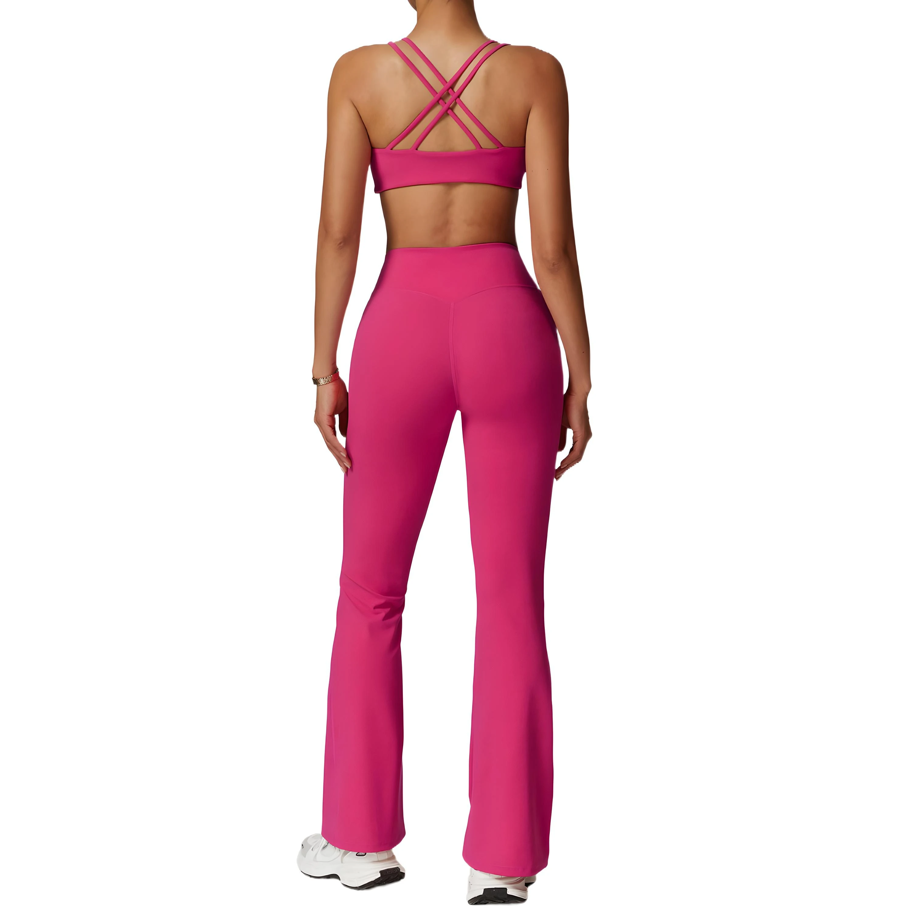YISHENHON Recyclable Fabric Quick Dry Yoga V Waist Gym Leggings Running Workout Wide Leg Pants Flare Woman Sport Pants