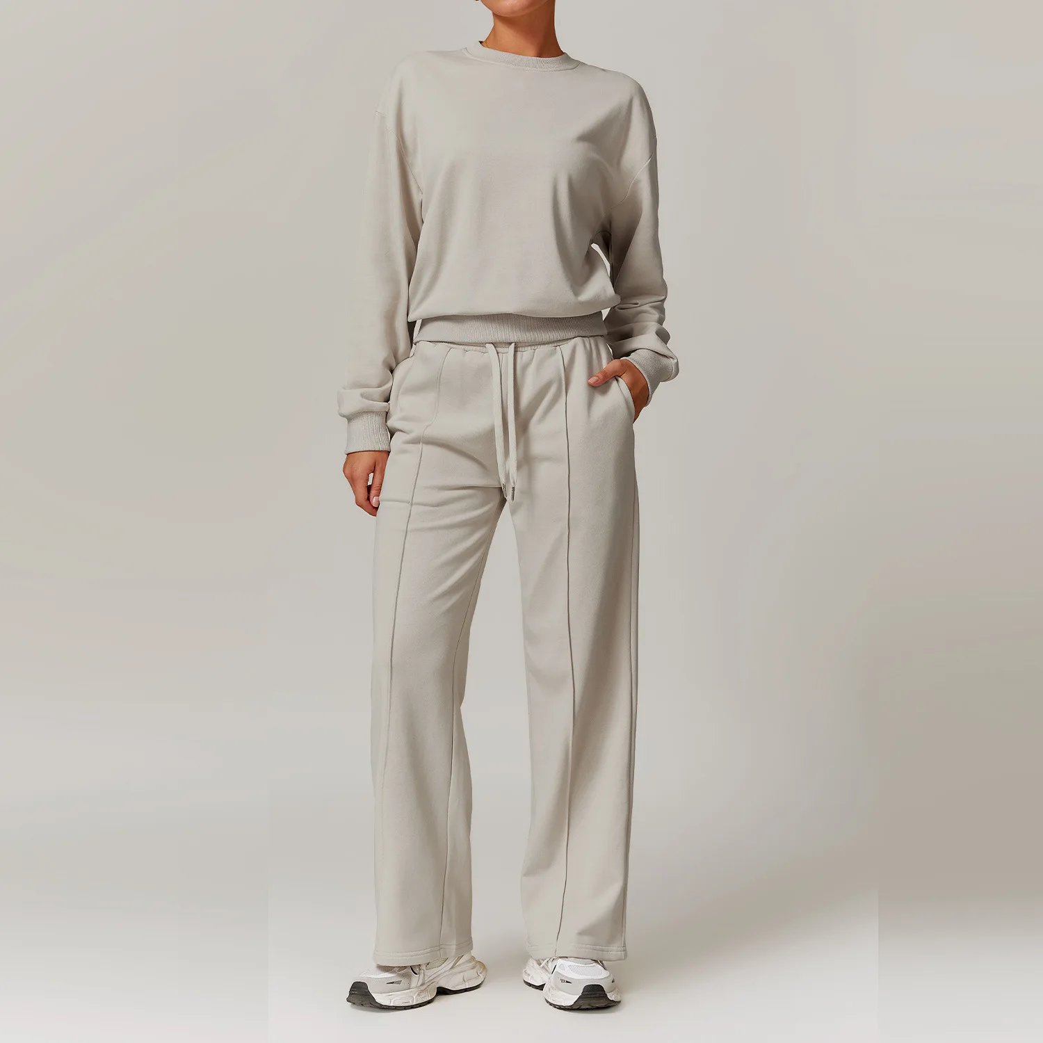 Women's Fitness Activewear Loose Casual Straight Wide Leg Drawstring Elastic Waistband Sports Pants High Waist Sweatpants