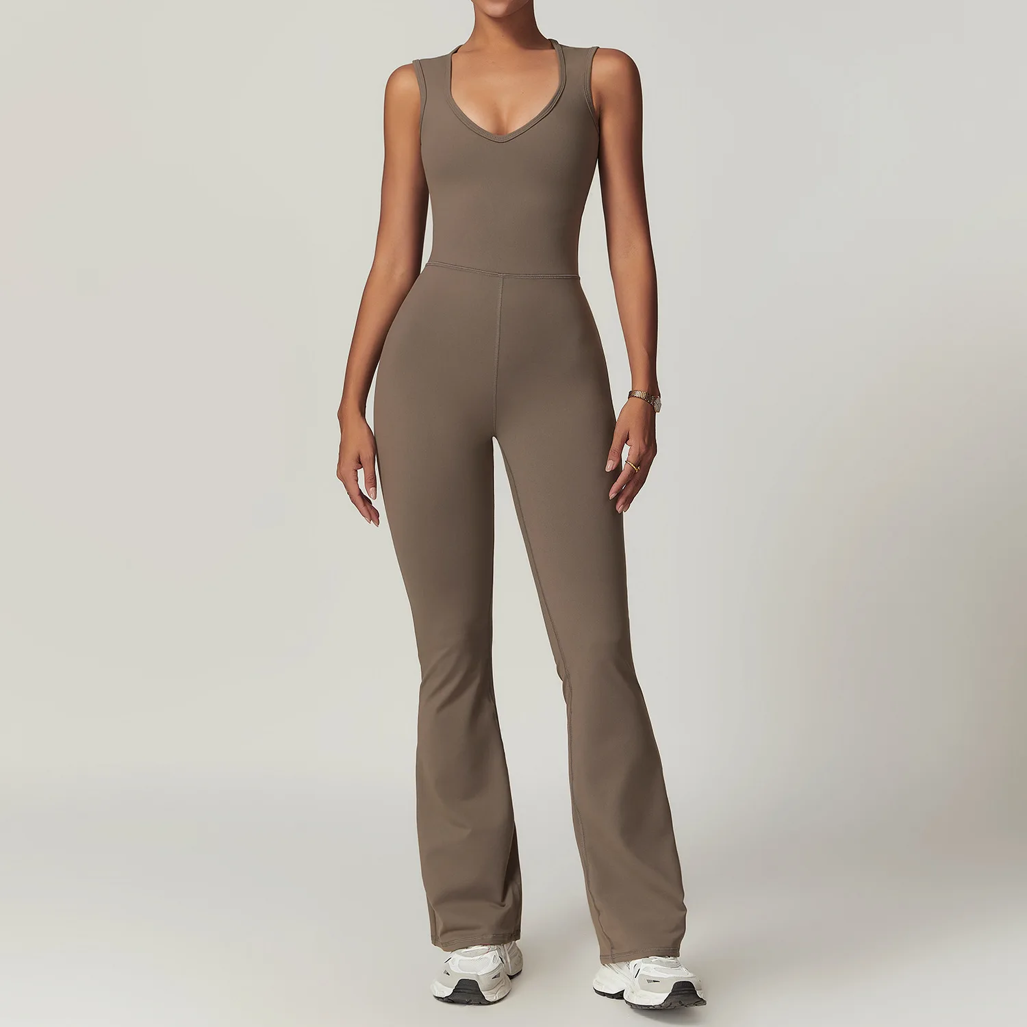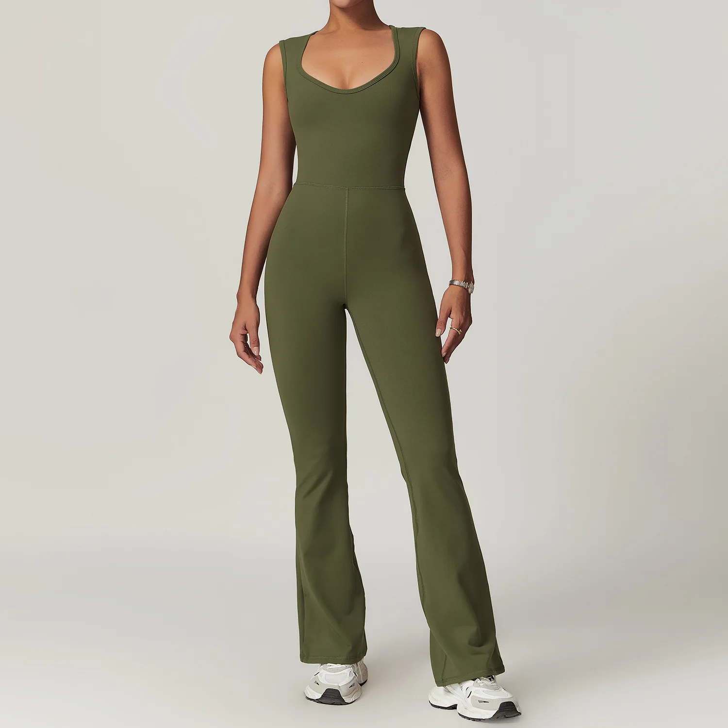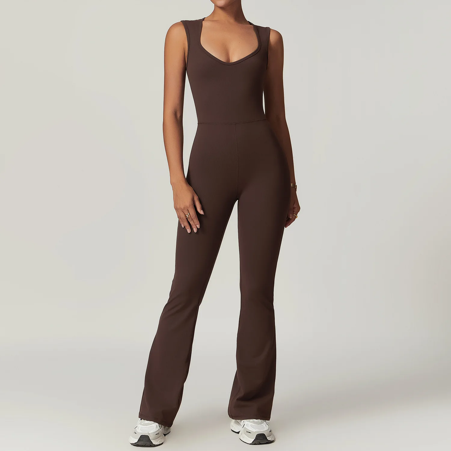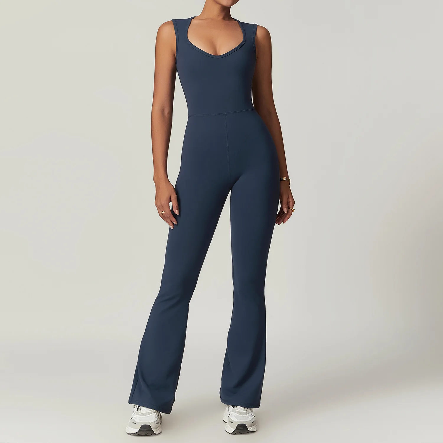 Custom Logo Nylon Tight Wide Shoulder Strap High Elastic Yoga Workout Gym Fitness Sports Flared Jumpsuit