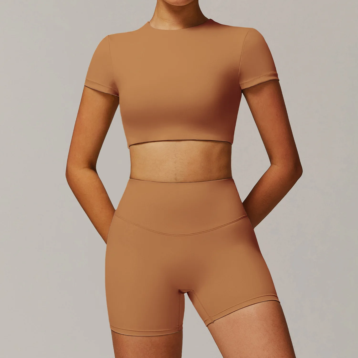 Fitness Apparel Sports Workout Crop Top Women Short Sleeve Cropped Gym Sweat T Shirt Round Collar Slim Fit T-Shirt