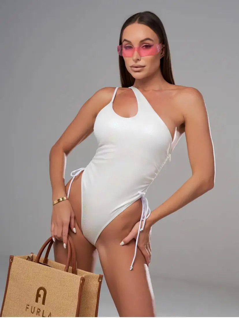 Chic Stylish One-Piece Swimsuit for Women Available White Black Asymmetric Style Solid Pattern High Cut for Beach Pool Wear