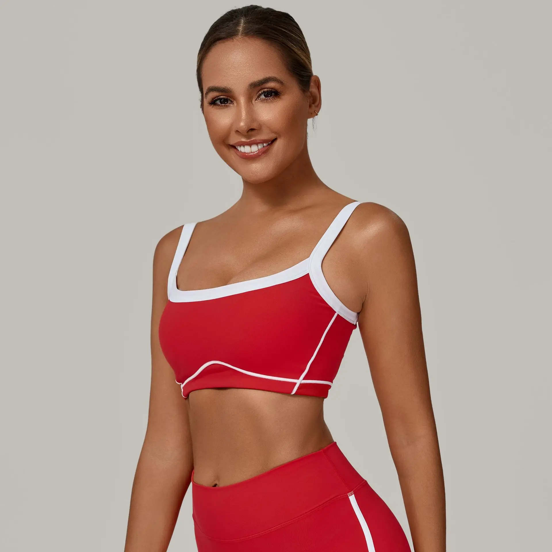 Fitness Yoga Wear Color Block Sports Bra with Cross Back Straps Sexy One-Piece