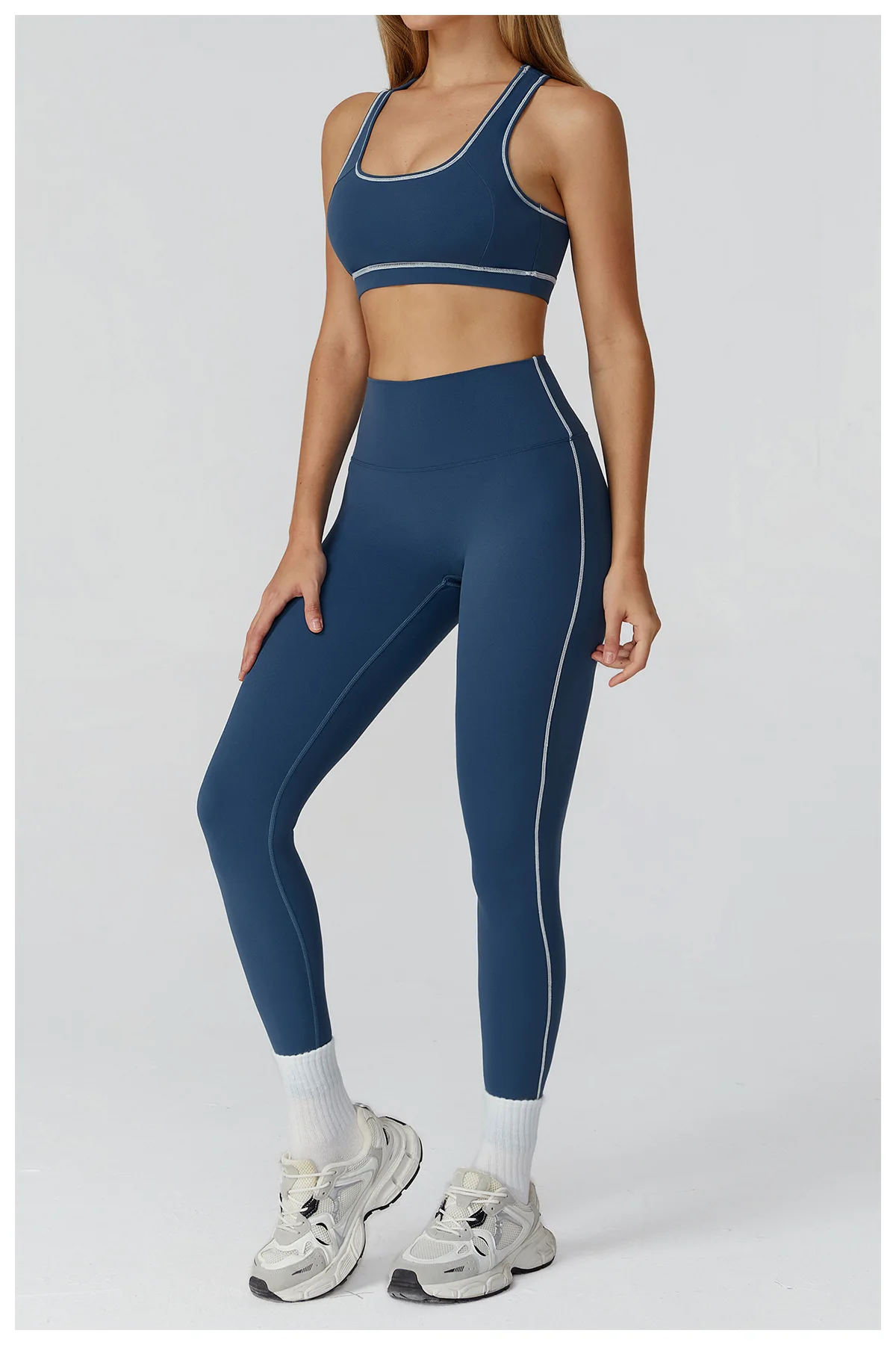 Contrast Color Yoga Suit with Zipper; Close-fitting Yoga Fitness Suit; Casual Running Sport Two-piece Suit.