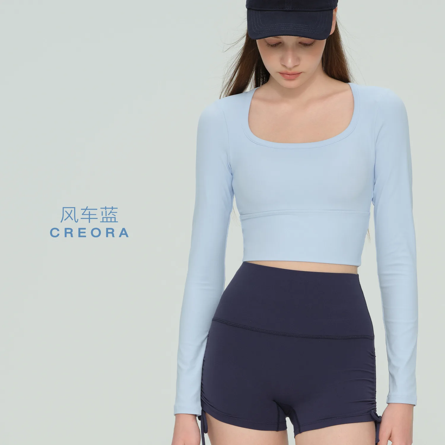 Long-sleeved with Fixed Chest Pad Slim-fit Base Sports Top for Women; Bare-feeling Pilates Yoga Long-sleeved
