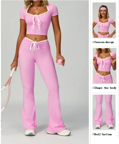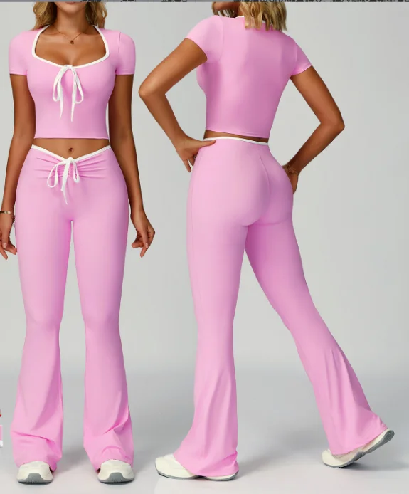 YISHENHON High Quality Gym Yoga Flare Leggings Hot Selling High-Waisted Wide Leg Pants for Women Solid Casual Sport Running