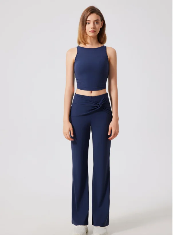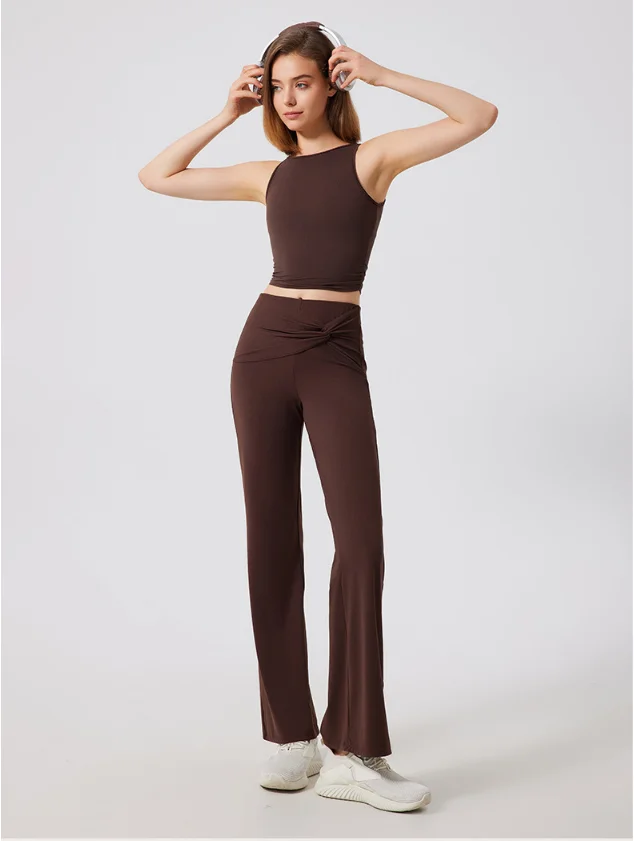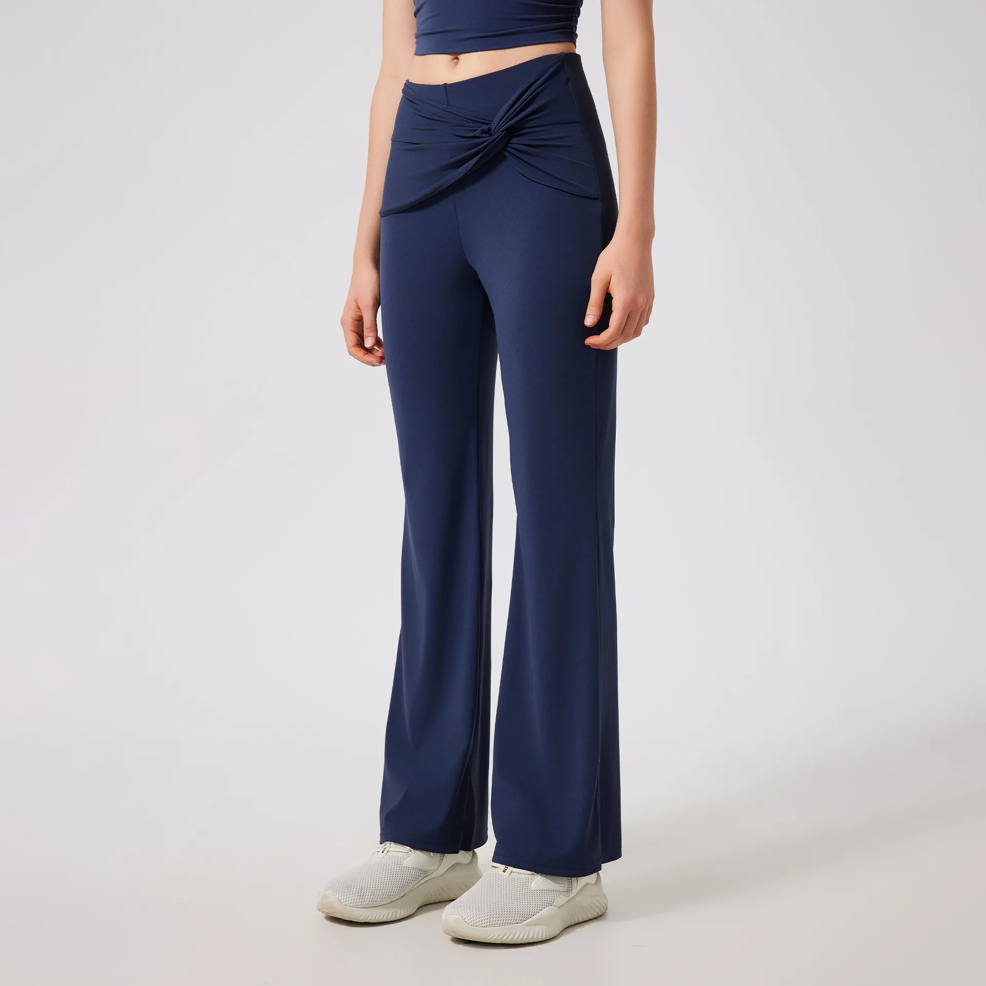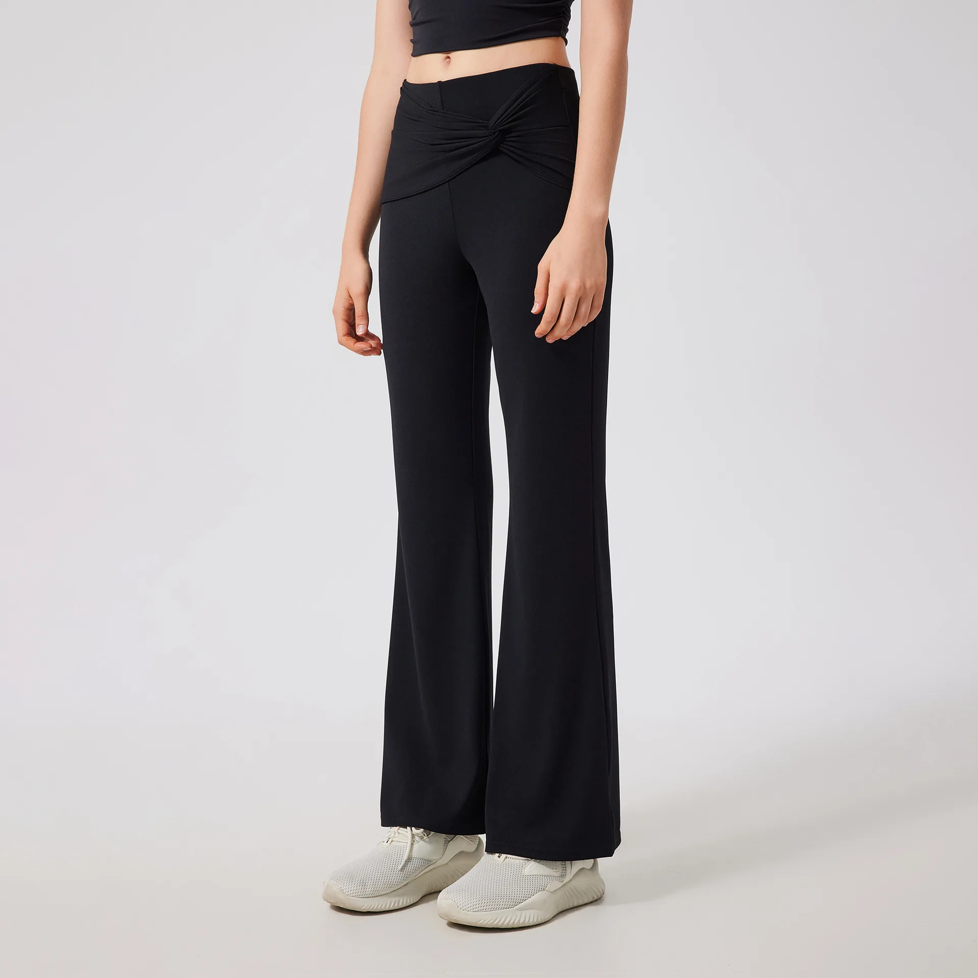 Loose Casual Straight Leg Bell Bottom Trousers Knotted Yoga Dance Fitness Pants for Women