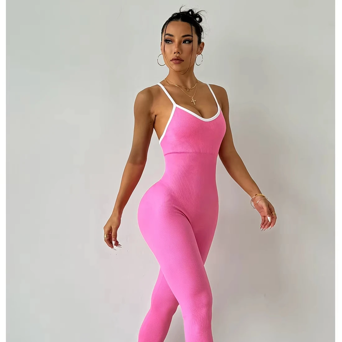 Contrast Color Camisole Sports Yoga Bodysuit Sleeveless Quick-drying Ribbed Close-fitting Fitness Bodysuit Yoga