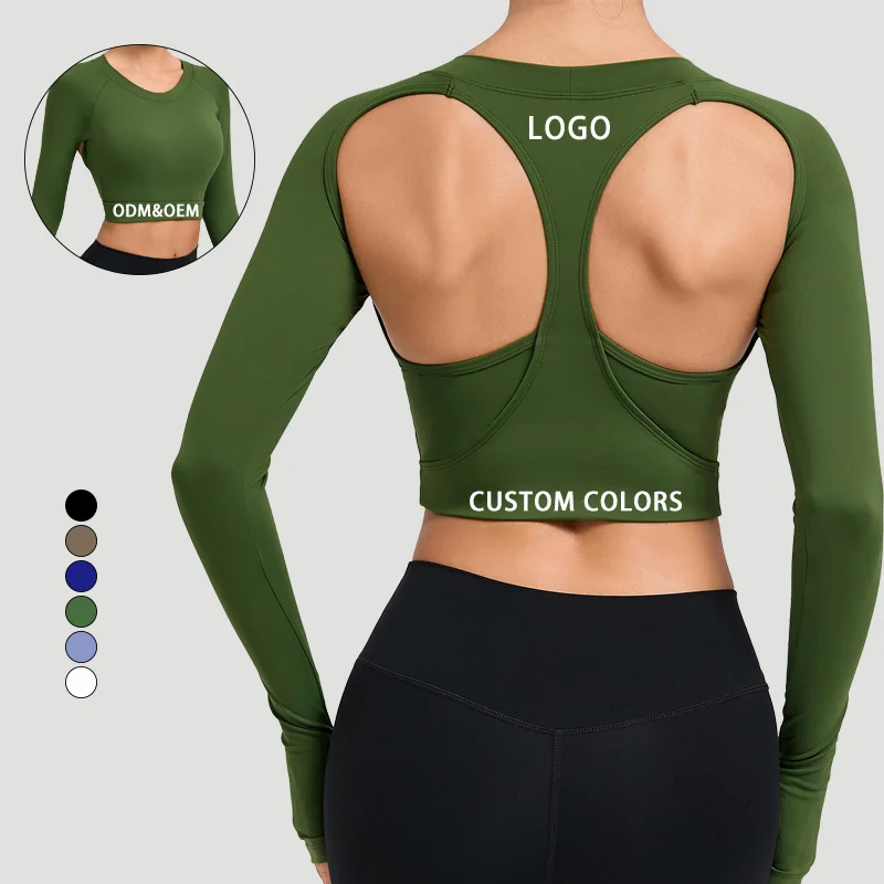 Nude Long Sleeve Crop Tops Yoga Wear Outdoor Running Sports T-shirt Quick-drying Fitness Wear Workout Athletic Yoga Sports Wear