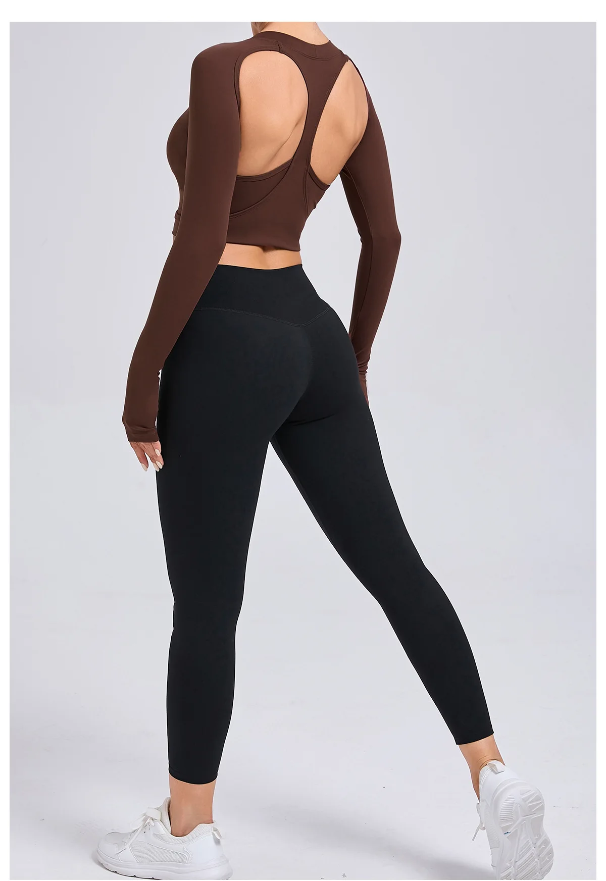 YISHENHON Women's Fitness Activewear Set 5pcs Seamless Yoga Leggings & Bras with Long Sleeve Gym Tops Solid Pattern Sport Outfit