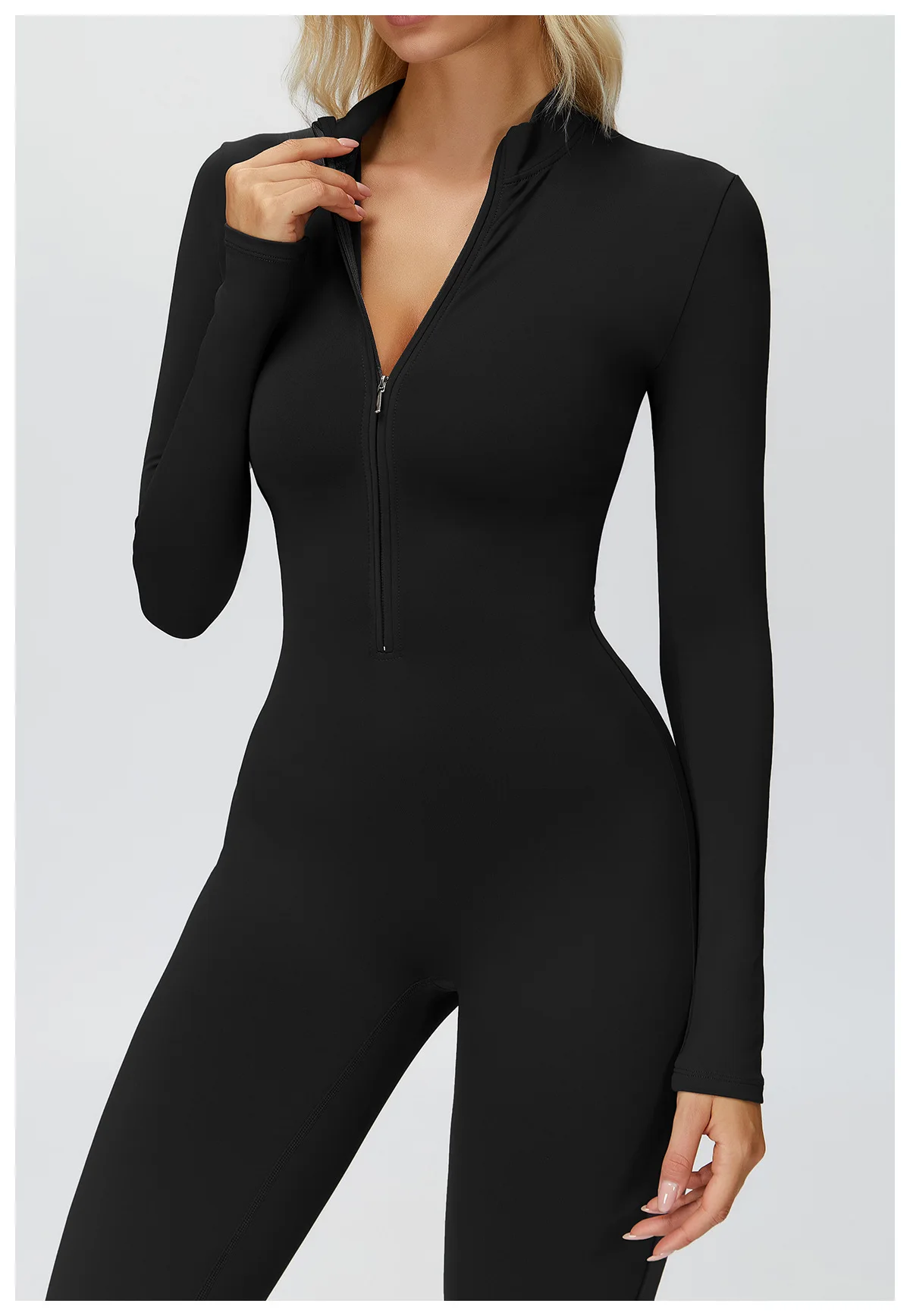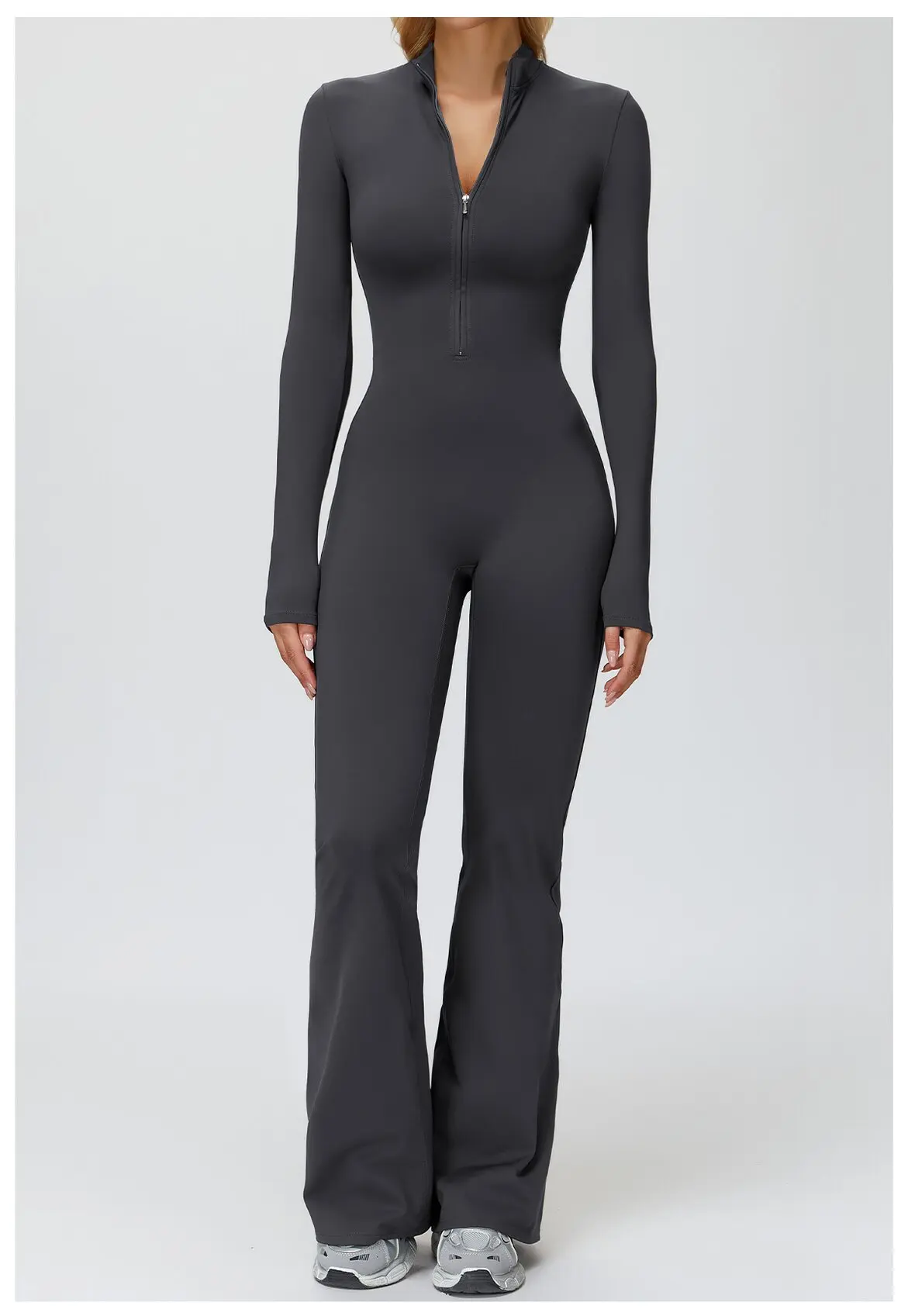 Custom One Piece Workout Bodysuit Sports Rompers Breathable Zippered Front Gym Fitness Jumpsuits Women Yoga Jumpsuit