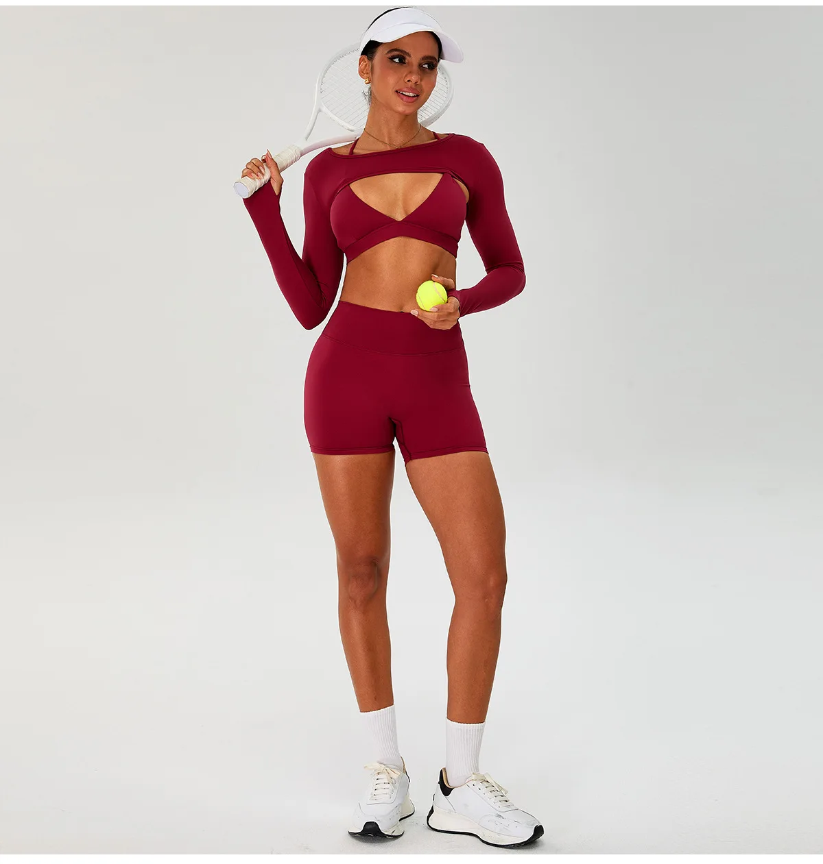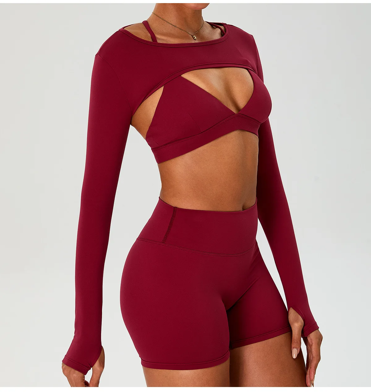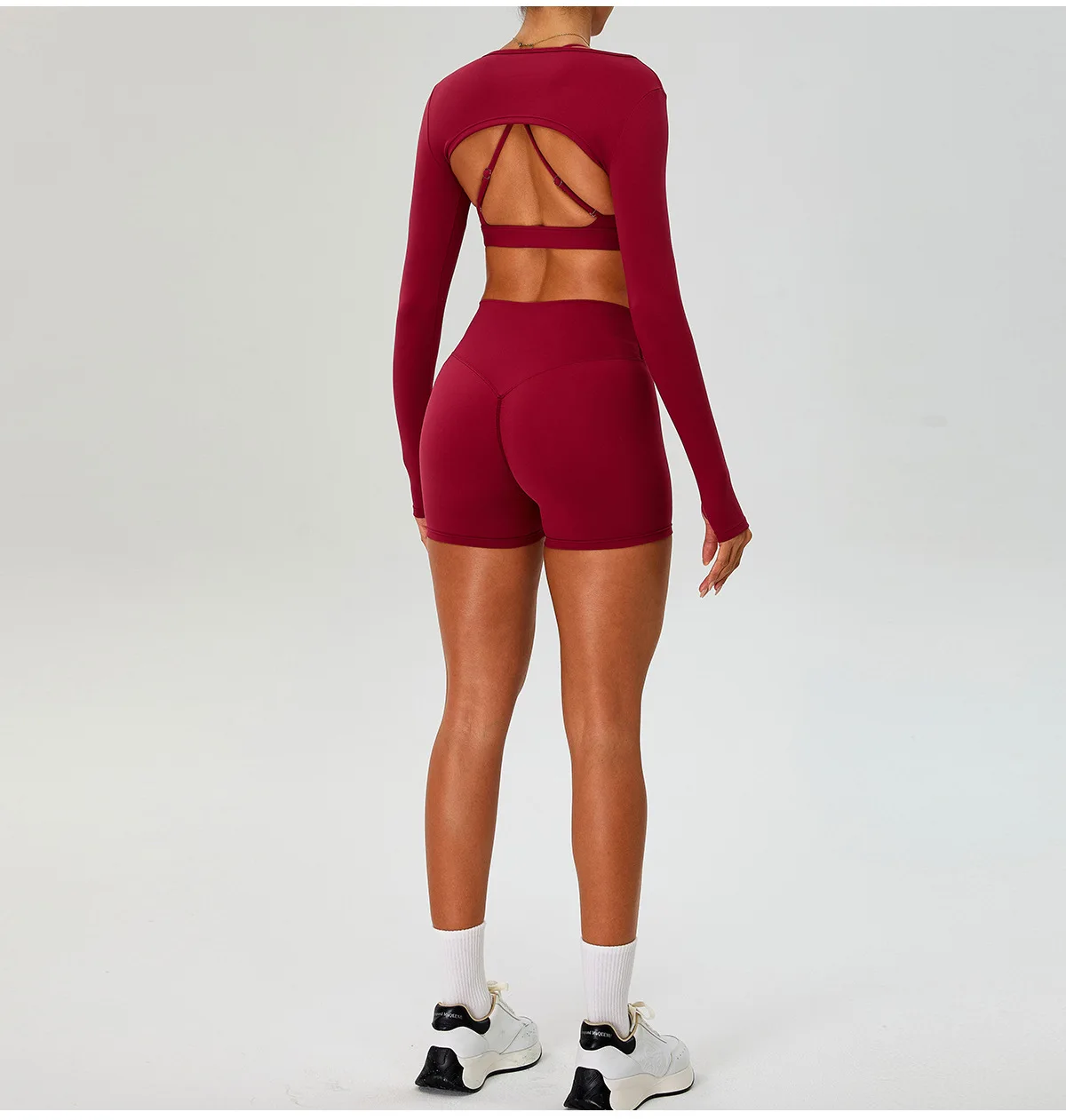 Gym Fitness Sets for Women High Quality Sports Outfit Scrunch Shorts and Bra Long Sleeve Active Yoga Wear Workout Sportswear