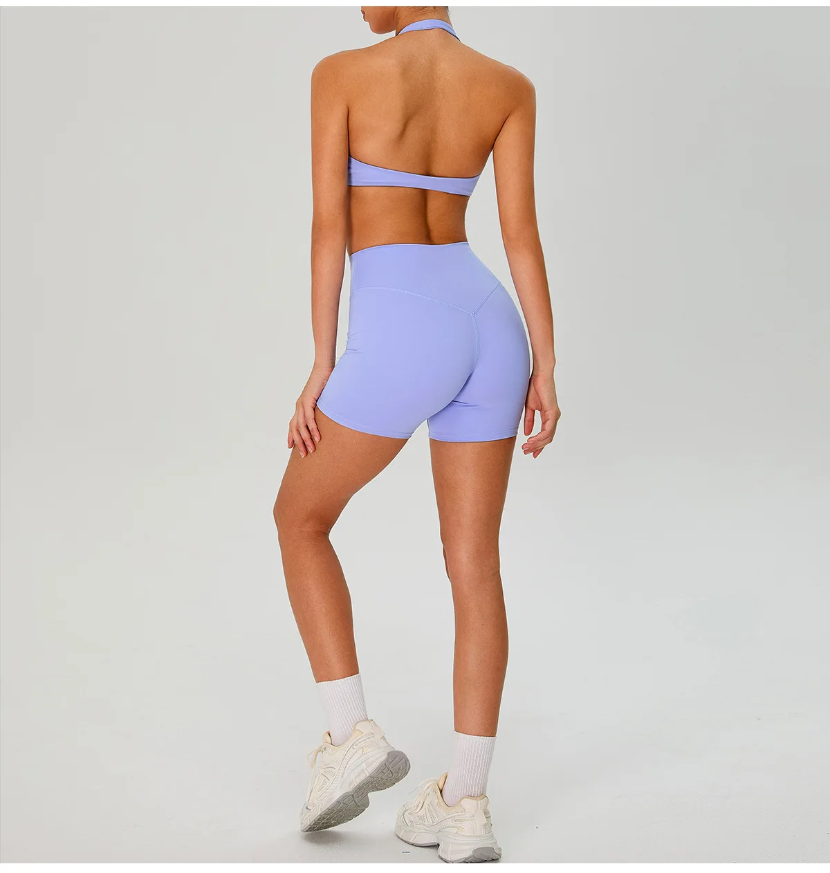 YISHENHON OEM/ODM Custom Workout Halter Scrunch Sports Bra Women Girls Stretchy Compression Quick Dry Padded Sexy Pants Polybag