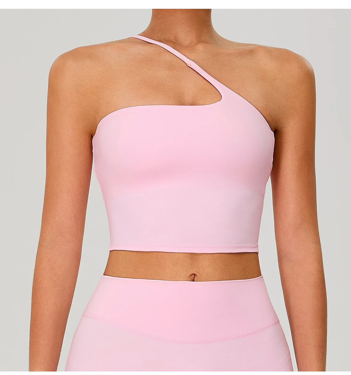 Fitness Push up Padded One Shoulder Sports Veste Running Gym Training Workout Yoga Veste Crop Tops Gym Vest