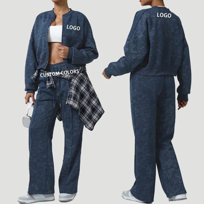 OEM Custom Women's Zip up Cotton Fleece Hoodie Set Casual Oversized Printed Hoodie Leggings Set Clothing Manufacturers