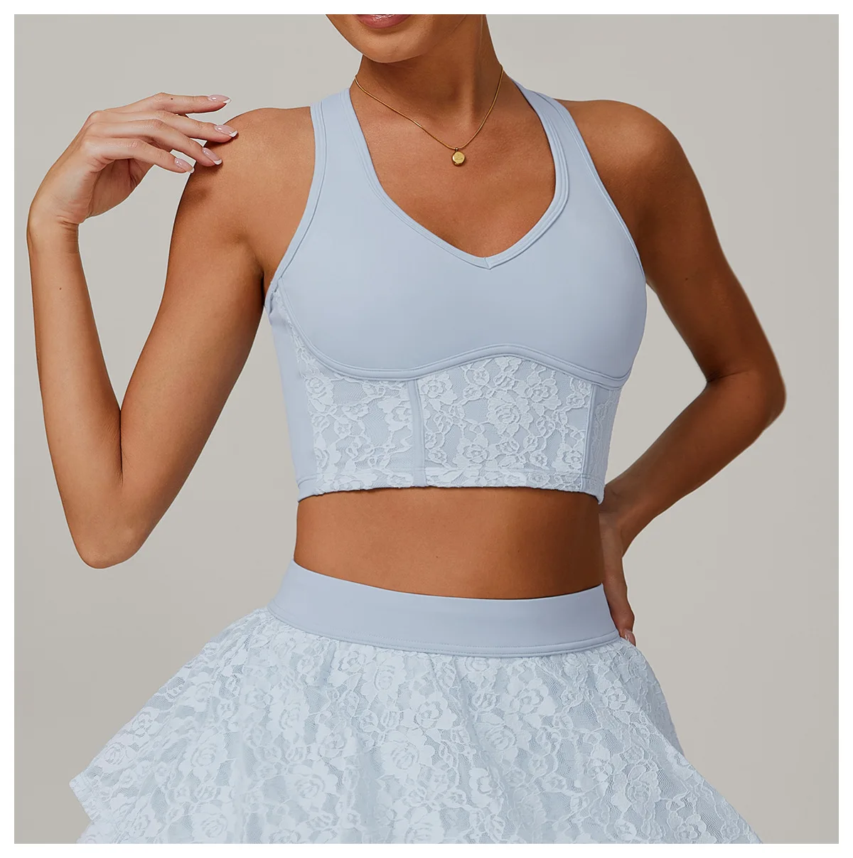 Lace Nude Yoga Vest Mesh Four-Way Stretch Breathable Backrest High Support Sports Underwear Running Fitness Top