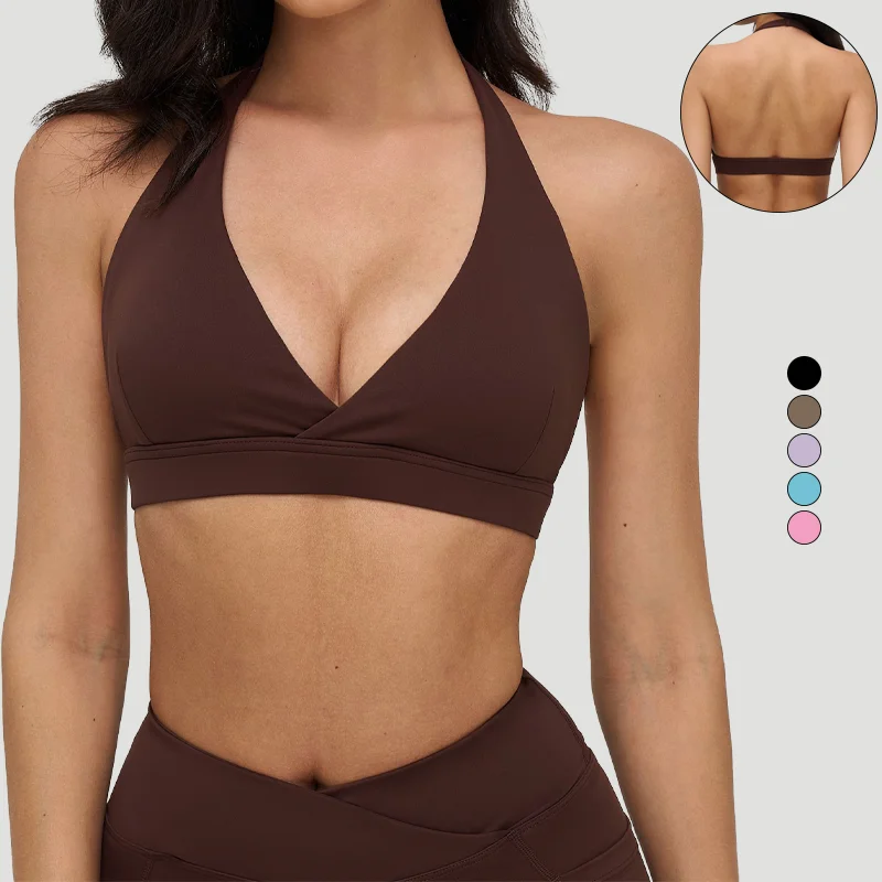 YISHENHON OEM/ODM Custom Workout Halter Scrunch Sports Bra Women Girls Stretchy Compression Quick Dry Padded Sexy Pants Polybag