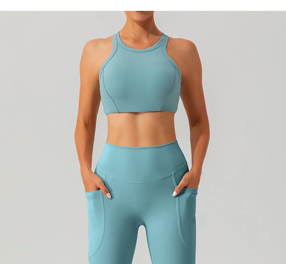 YISHENHON OEM/ODM Custom Workout Halter Scrunch Sports Bra Women Girls Stretchy Compression Quick Dry Padded Sexy Pants Polybag