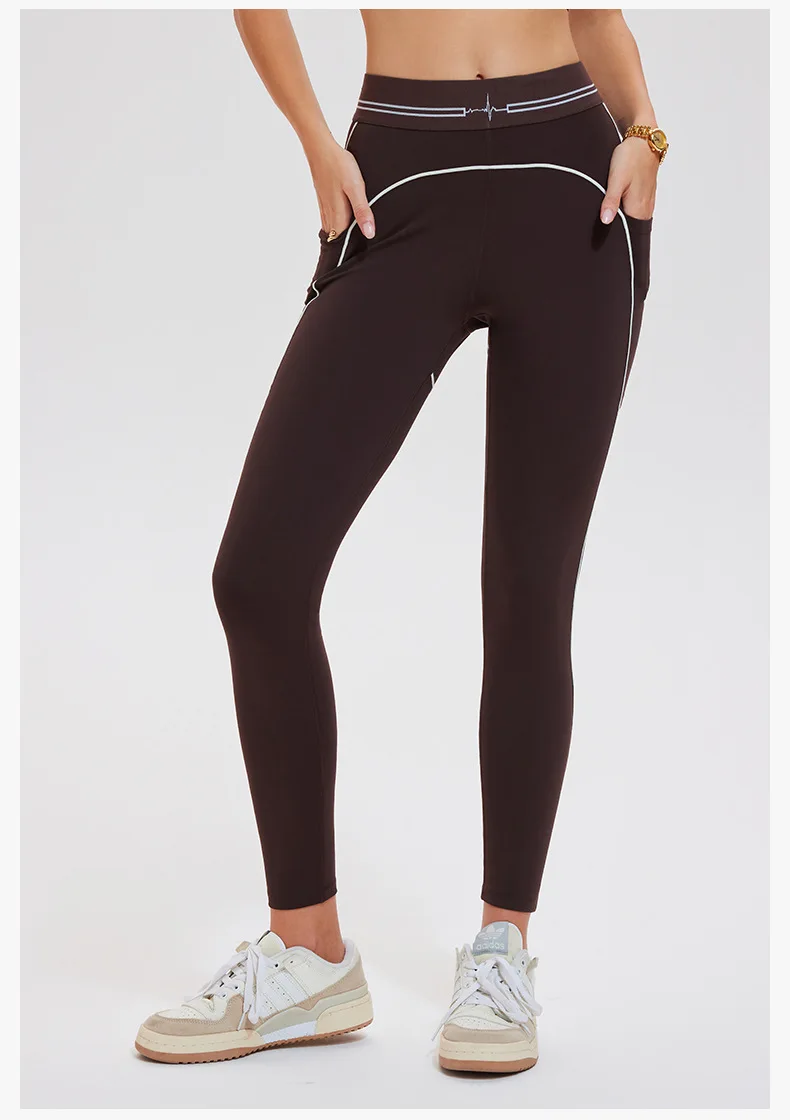 New Yoga Set Women's Two-piece Set Nude Brushed High-waisted Sport Pants with Pocket Outdoor Fitness Wear Set