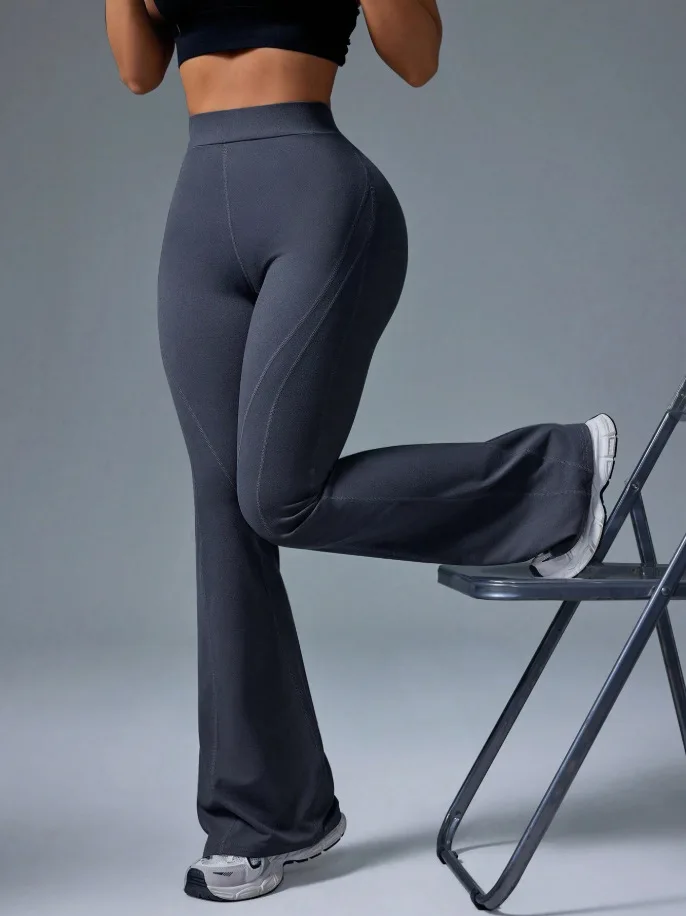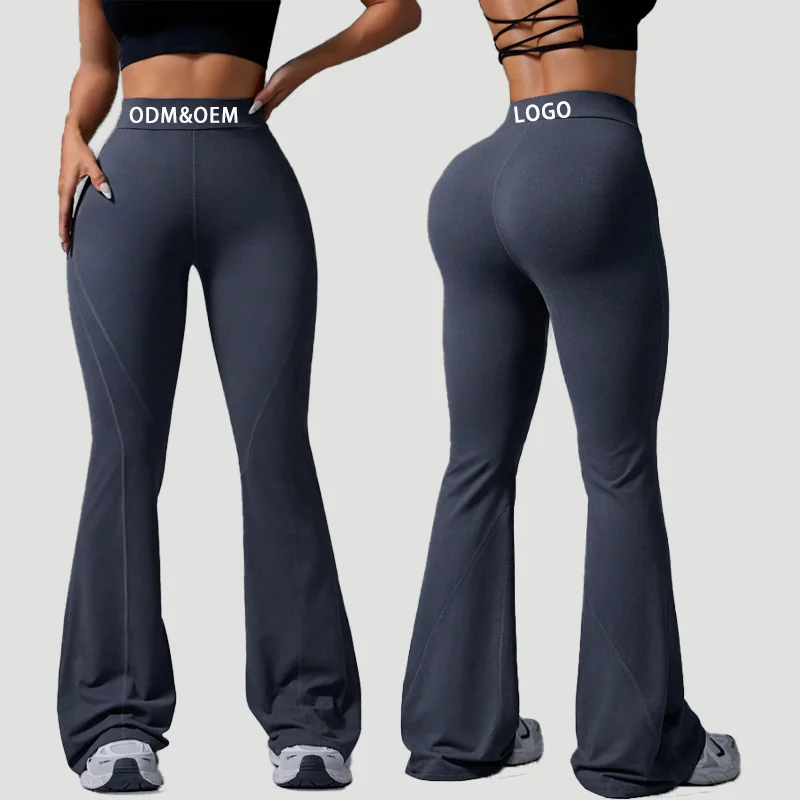 YISHENHON High Quality Gym Yoga Flare Leggings Hot Selling High-Waisted Wide Leg Pants for Women Solid Casual Sport Running