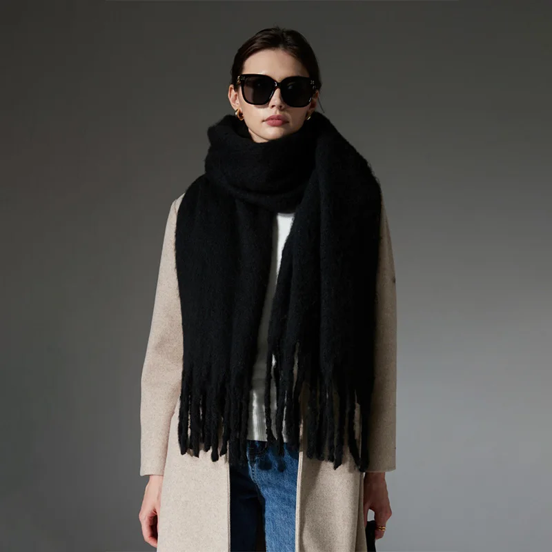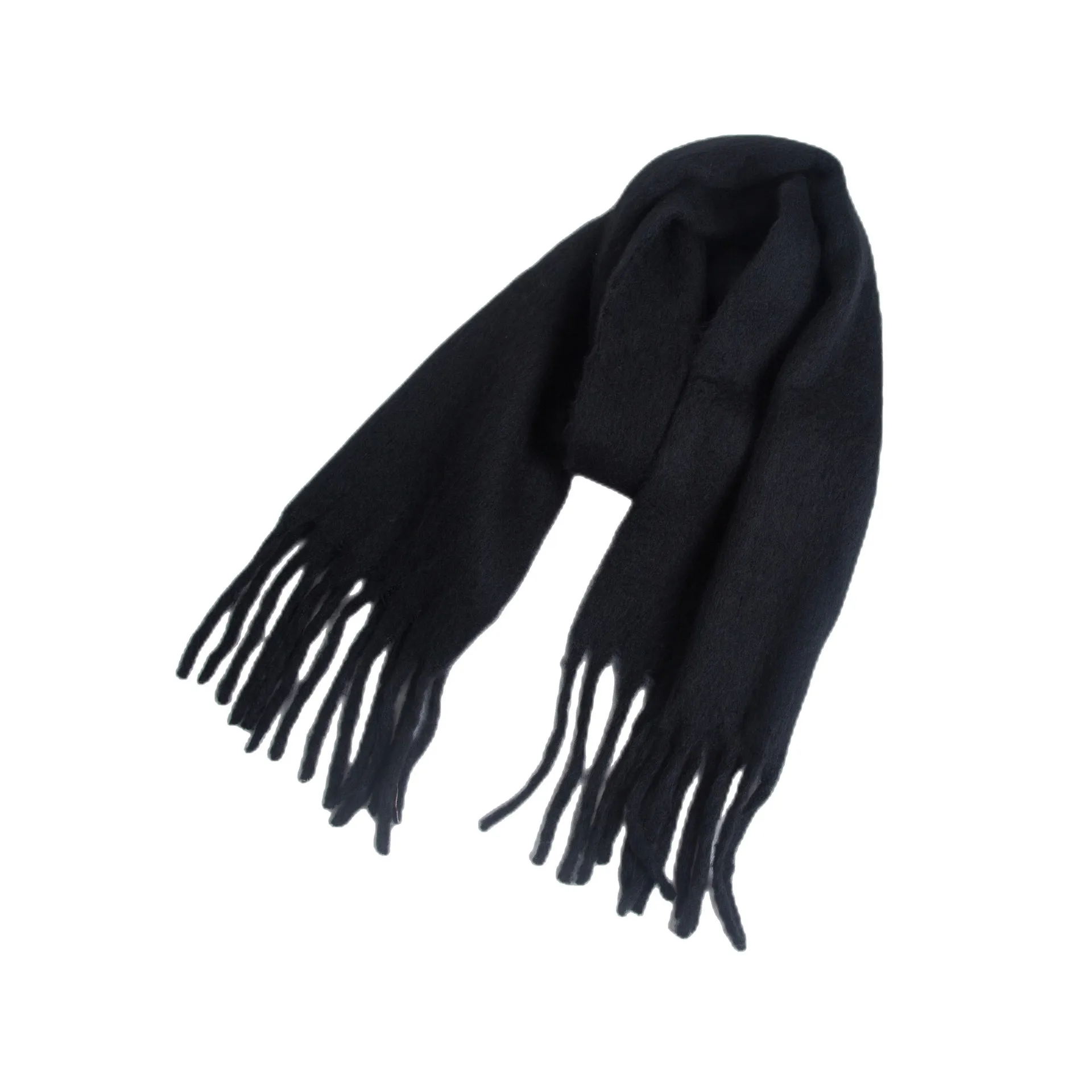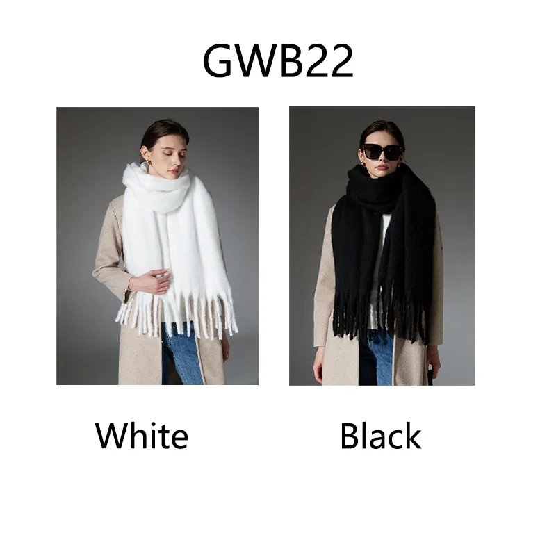 Roregal Winter Polyester Warm Scarves 190cm*50cm Long Solid Color Tassel White Scarf Shawl
