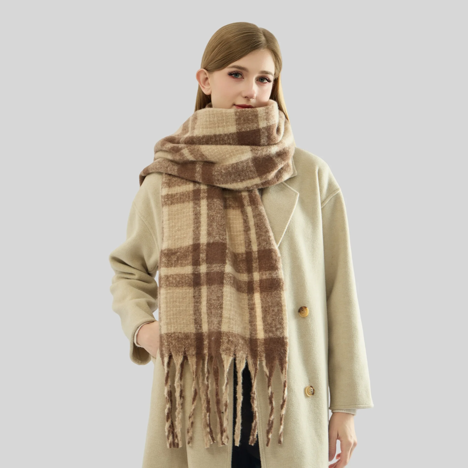 Roregal Unisex Winter Scarfs Women Cold Weather Warm Thick Plaid Scarf Long Large Oversized Checked Scarves