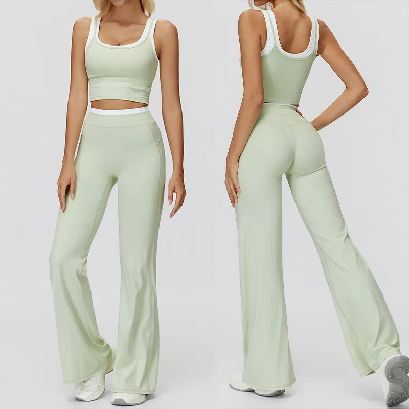 YISHENHON High Quality Gym Yoga Flare Leggings Hot Selling High-Waisted Wide Leg Pants for Women Solid Casual Sport Running