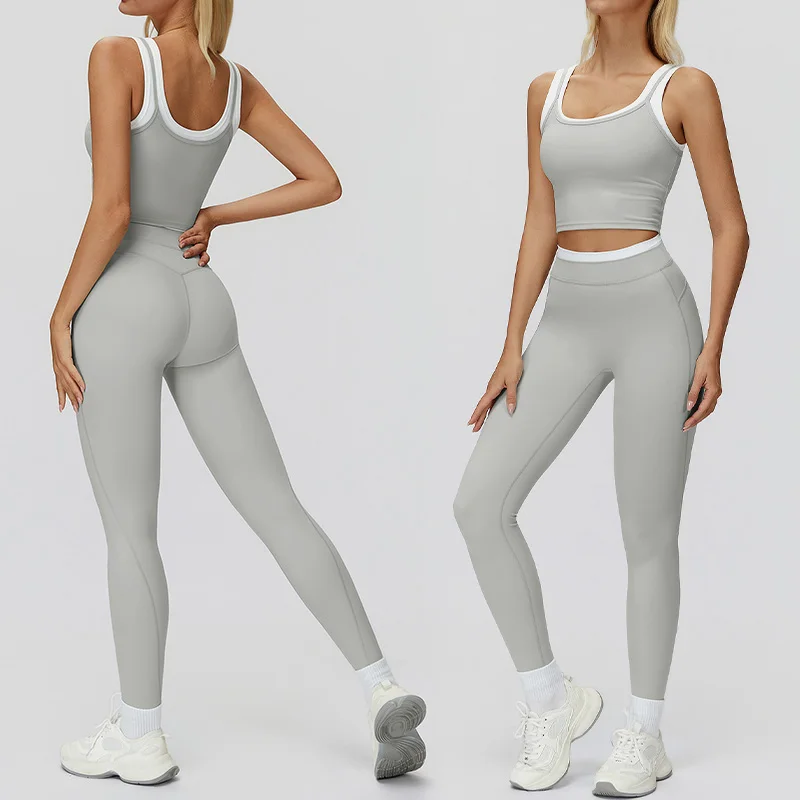 Roregal Nude Contrast Color Tight Yoga Clothing Beautiful Back Sports Set Workout Sports Yoga Leggings and Bra Set