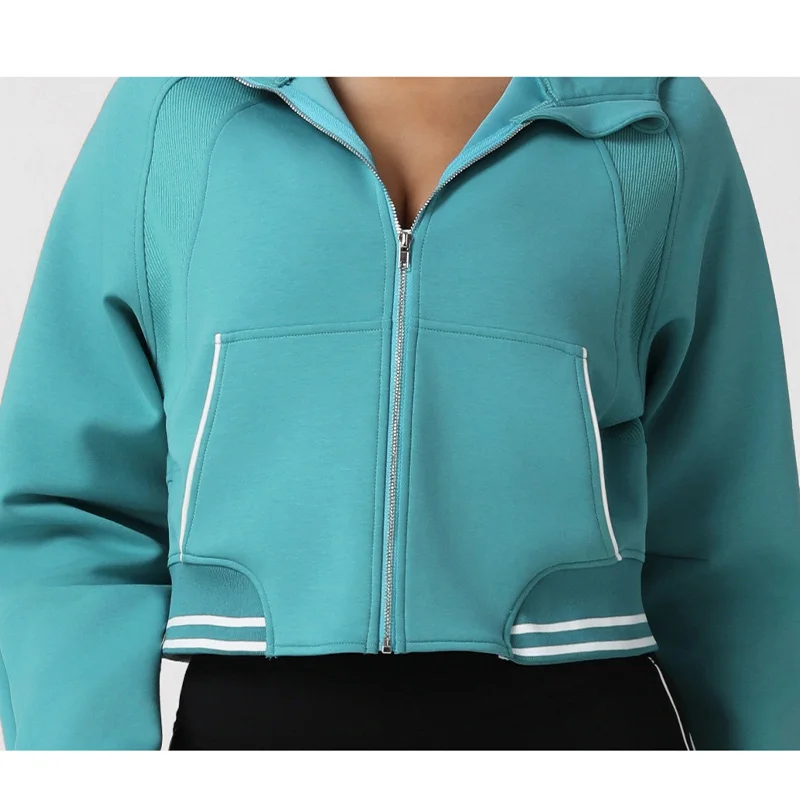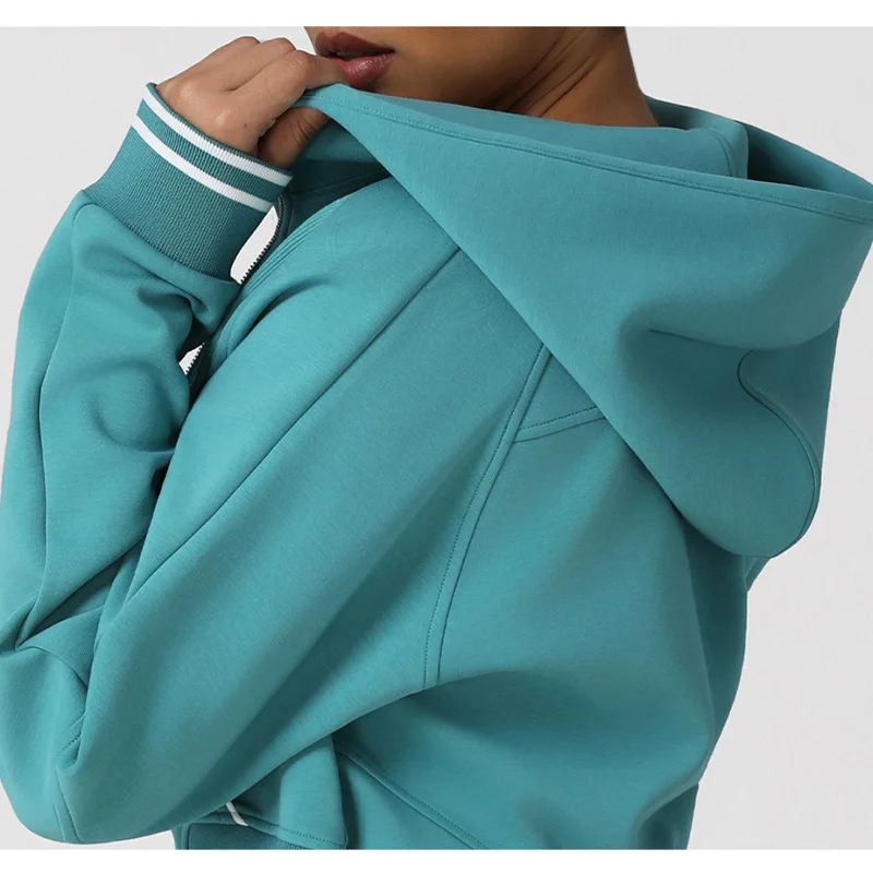 Roregal New Sports Casual Long Sleeved Warm Top Athletic Women Sportswear Zipper Custom Logo Gym Crop Hoodie With Pocket