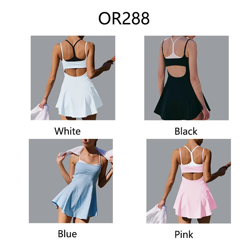 Roregal Sports Gym Fitness Women Yoga Wear Lightweight Fitness Quick Dry Sexy Tennis Dress With Chest Pad