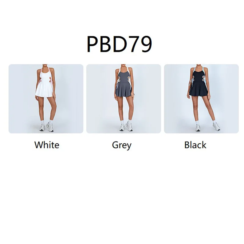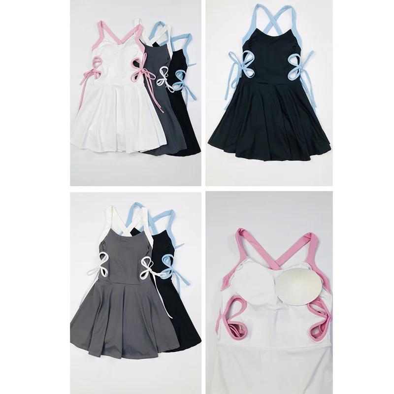 Roregal Fitness Contrasting Colors Breathable Waist Hollow Dress Women's Skirt with Chest Pad for Sports Tennis Wear