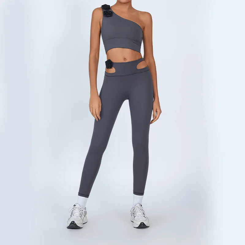 Roregal Custom Design Sportswear Two Pieces Yoga Suit Workout Yoga Sports One Shoulder Bra Butt Lift Yoga Leggings Set
