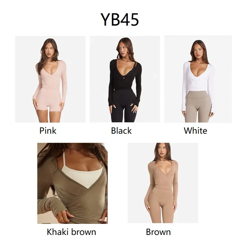 YISHENHON Women's Fitness Activewear Set 5pcs Seamless Yoga Leggings & Bras with Long Sleeve Gym Tops Solid Pattern Sport Outfit