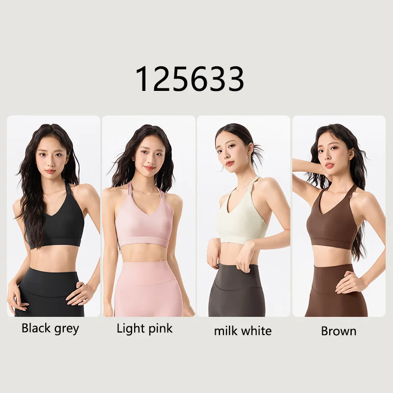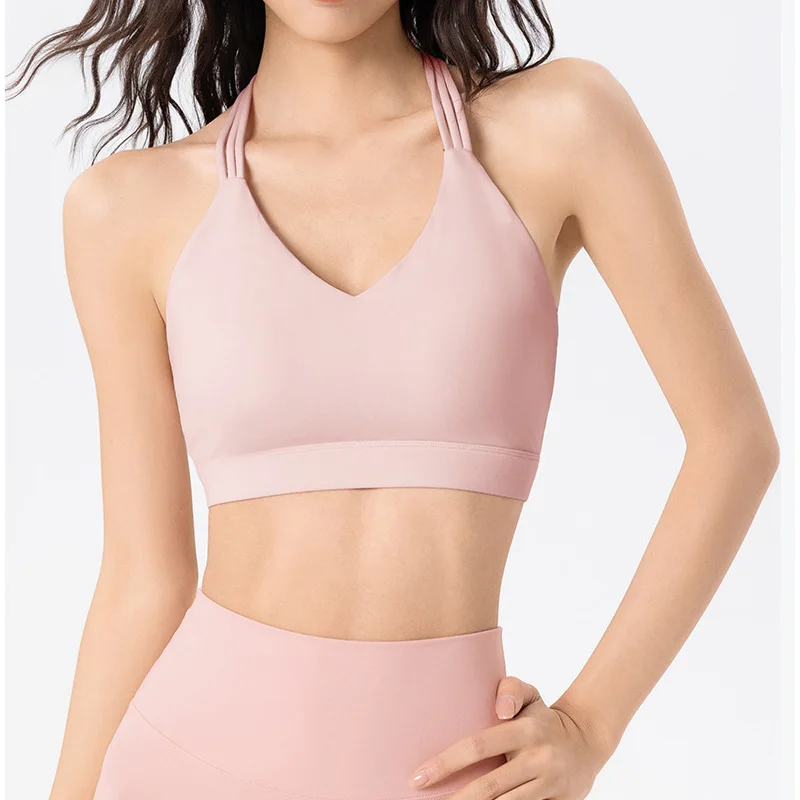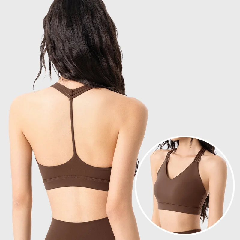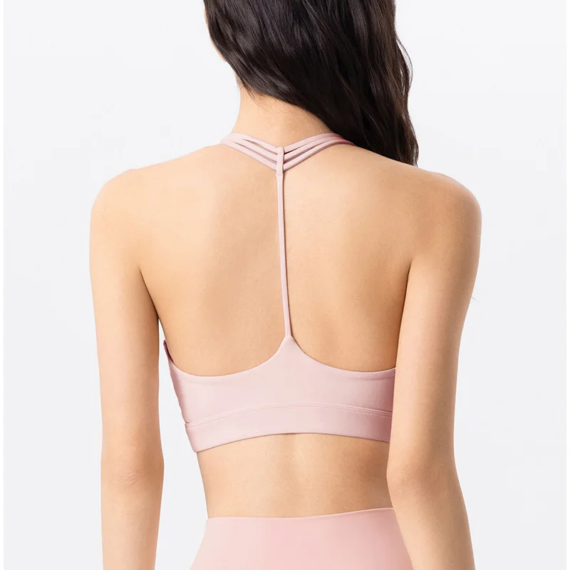 Roregal New Professional Sports Underwear Women's T-shaped Back Shockproof Fitness Bra With Fixed Bra Pad