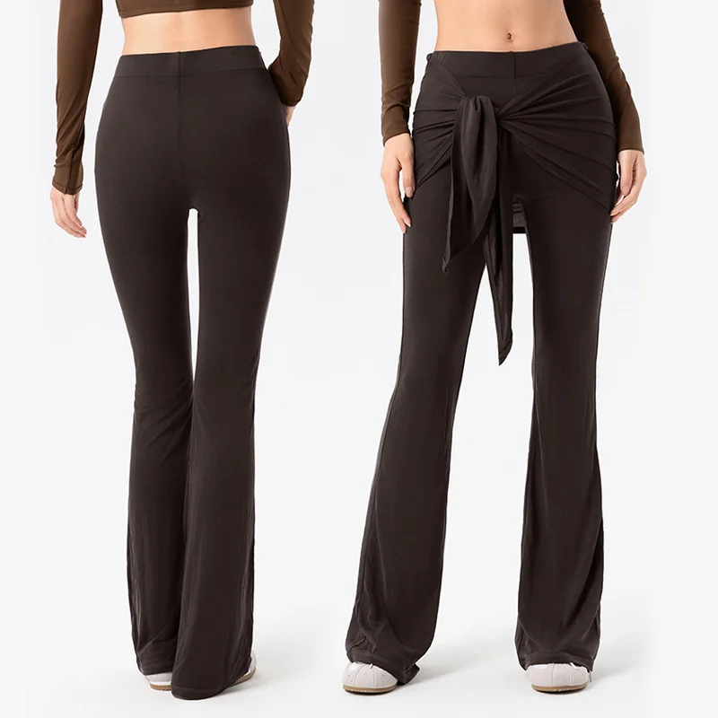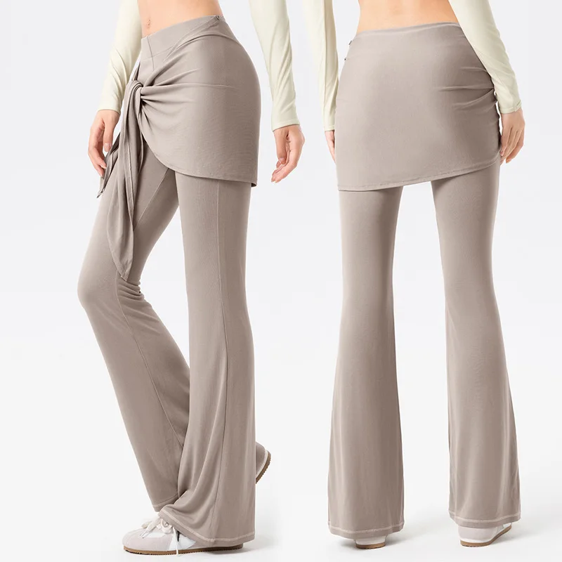 Roregal New Arrival 2-piece Set Detachable Fart Curtain Yoga Leggings High Waist Casual Yoga Micro Flared Pants