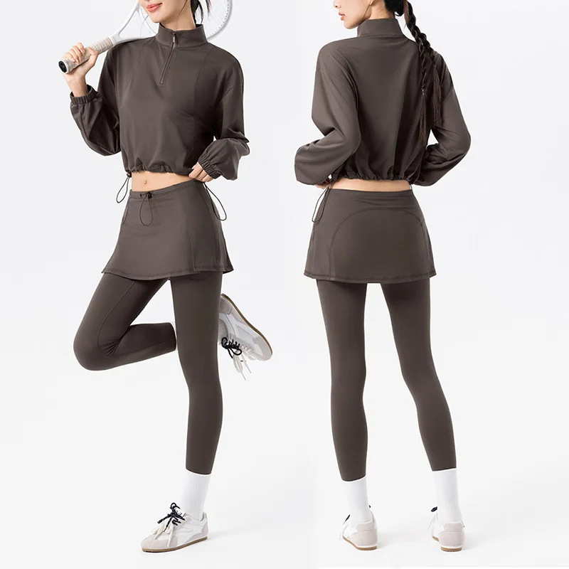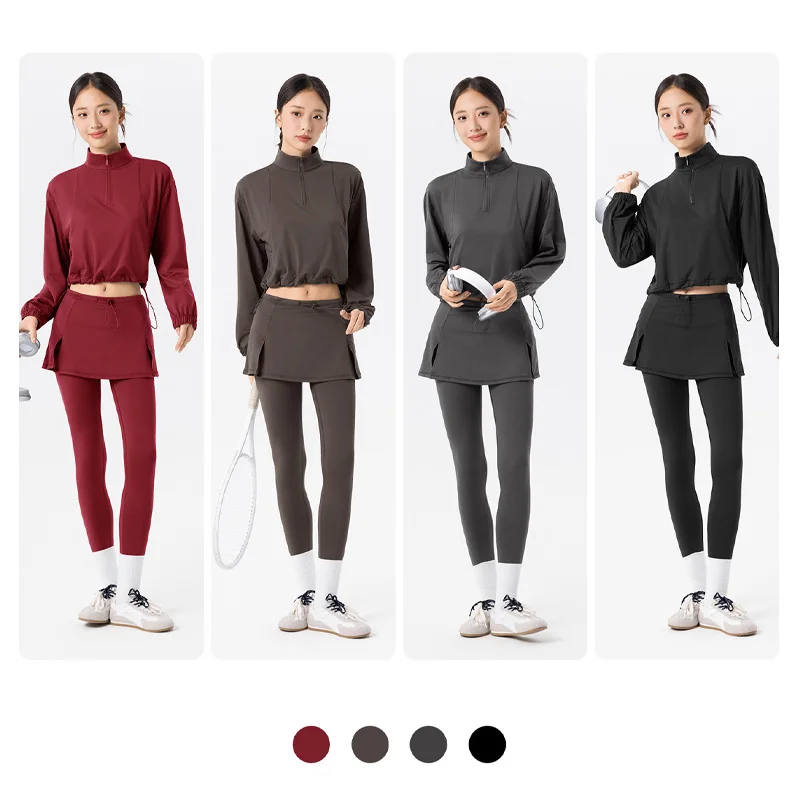 YISHENHON New Design Fake-two Sports Dress Female Anti-slip Outdoor Running Fitness Tennis Dress Women With High Quality