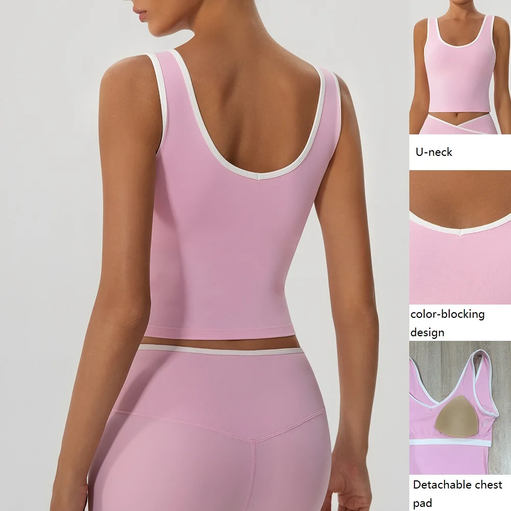 Roregal Nude Fitness Workout Top Sport Tank Top Running Crop Top Activewear Yoga Wear Vest With Chest Pad