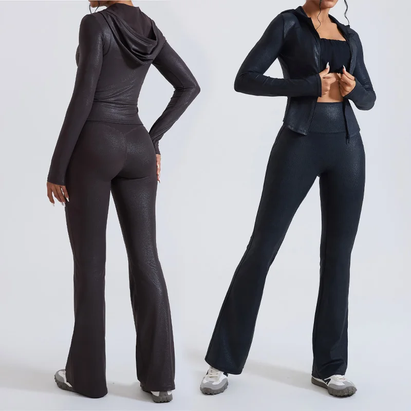 YISHENHON High Quality Gym Yoga Flare Leggings Hot Selling High-Waisted Wide Leg Pants for Women Solid Casual Sport Running